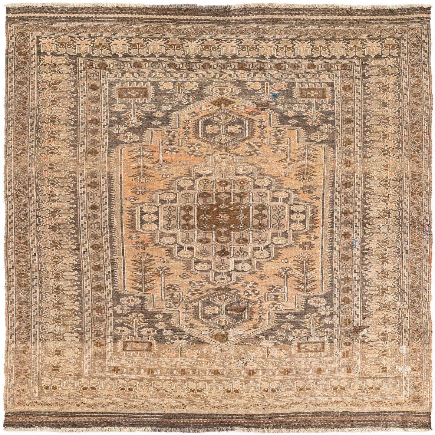 A 5x8 rectangular Ultra Vintage wool rug featuring a central medallion and intricate Persian patterns in shades of orange, brown, and beige.