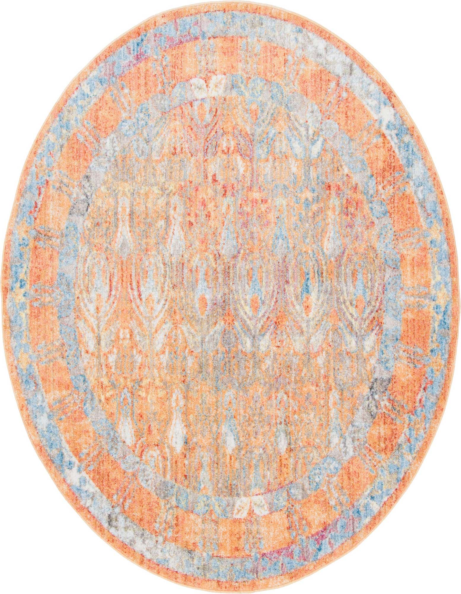 Primary color is Orange. Colors in this rug include: Orange, Beige, Blue, Ivory, Red, Pink.