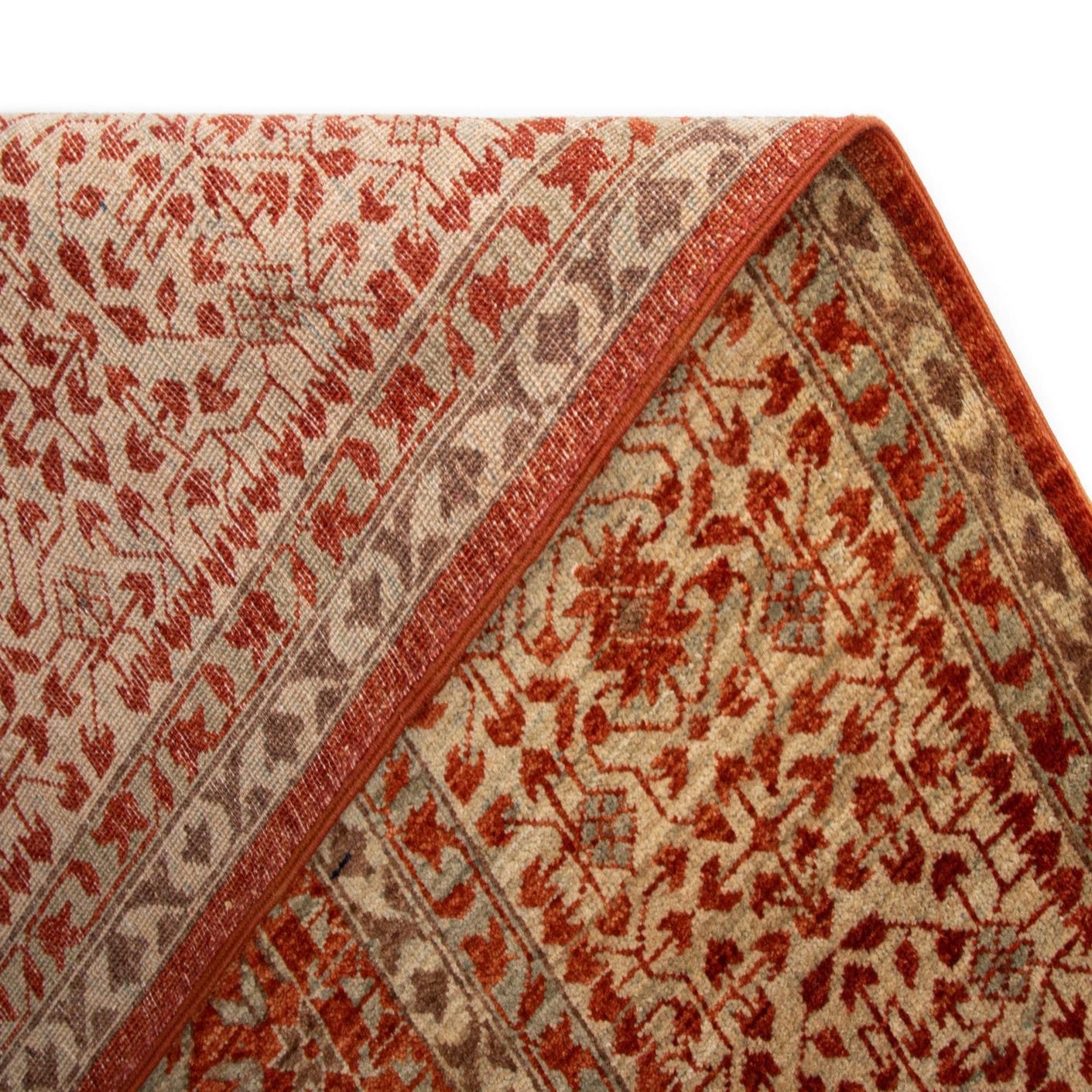 A 6x9 rectangular Amina Persian rug in rich orange and cream, featuring intricate traditional patterns.