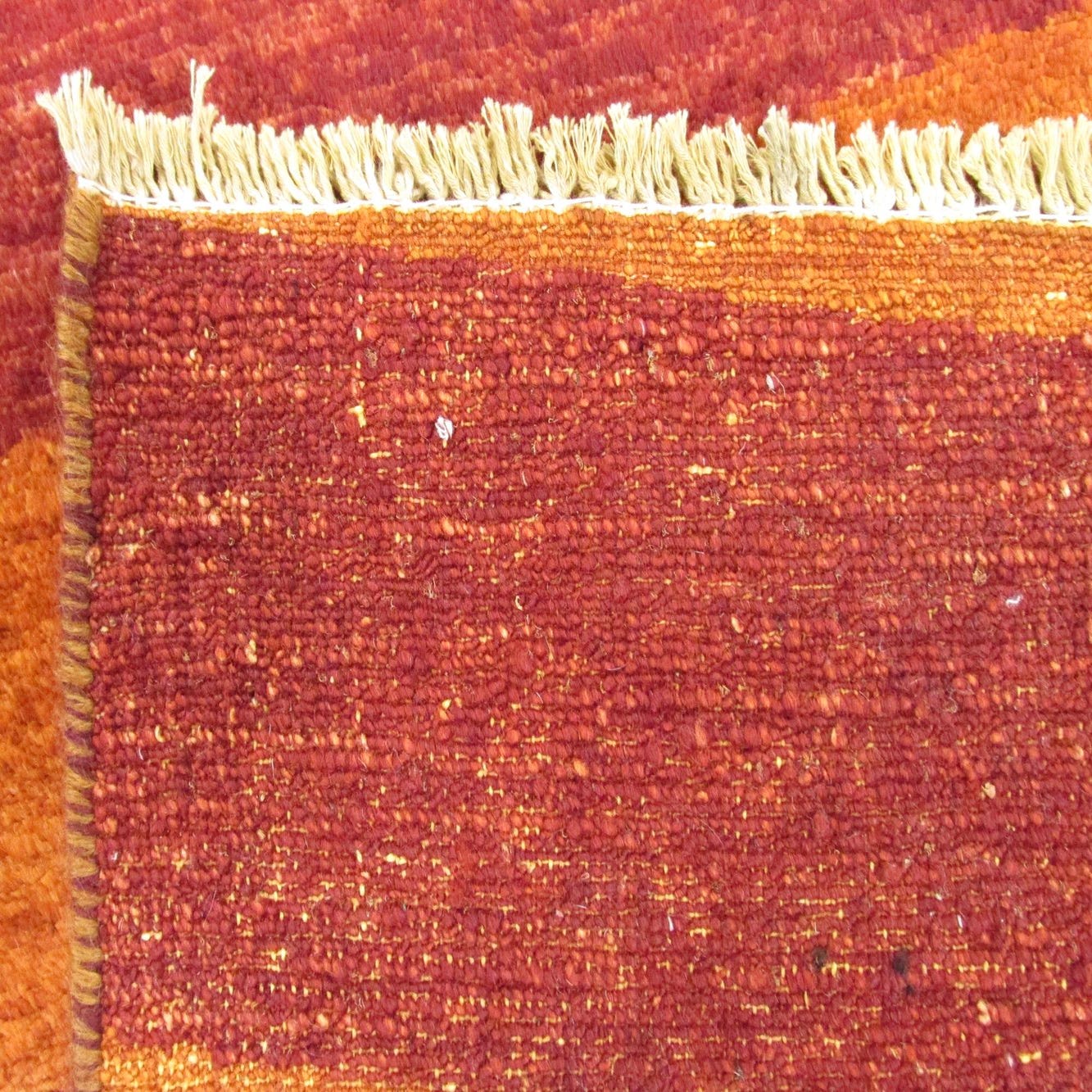 Primary color is Orange. Colors in this rug include: Orange, Red.