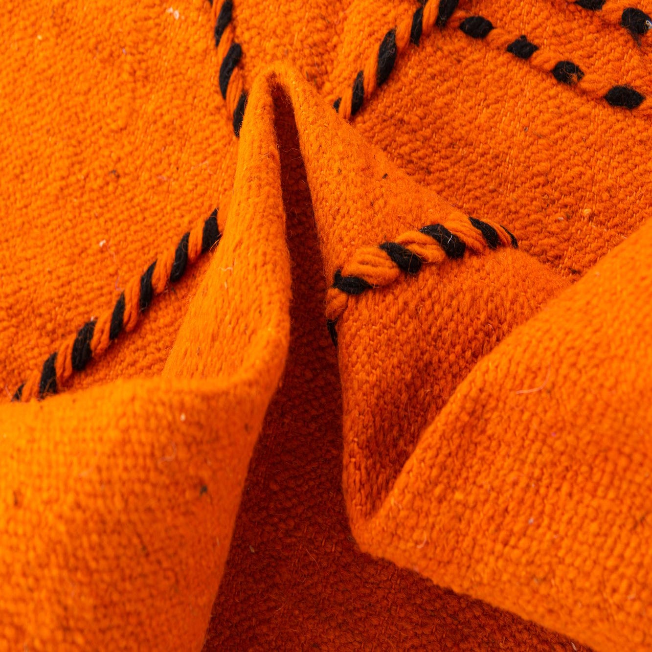 Primary color is Orange. Colors in this rug include: Orange, Black.