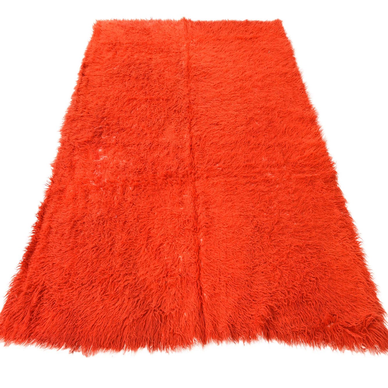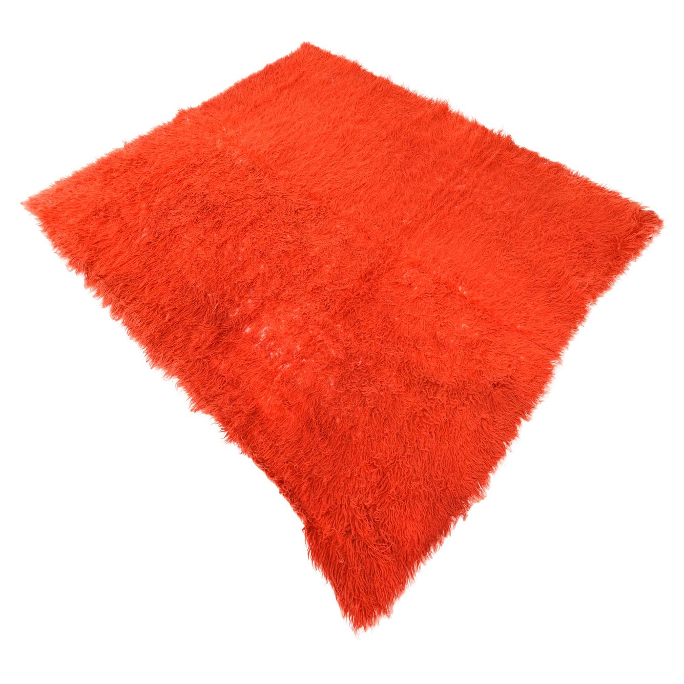 A vibrant 6x9 rectangular orange shag rug made of wool, featuring a plush, textured pile.