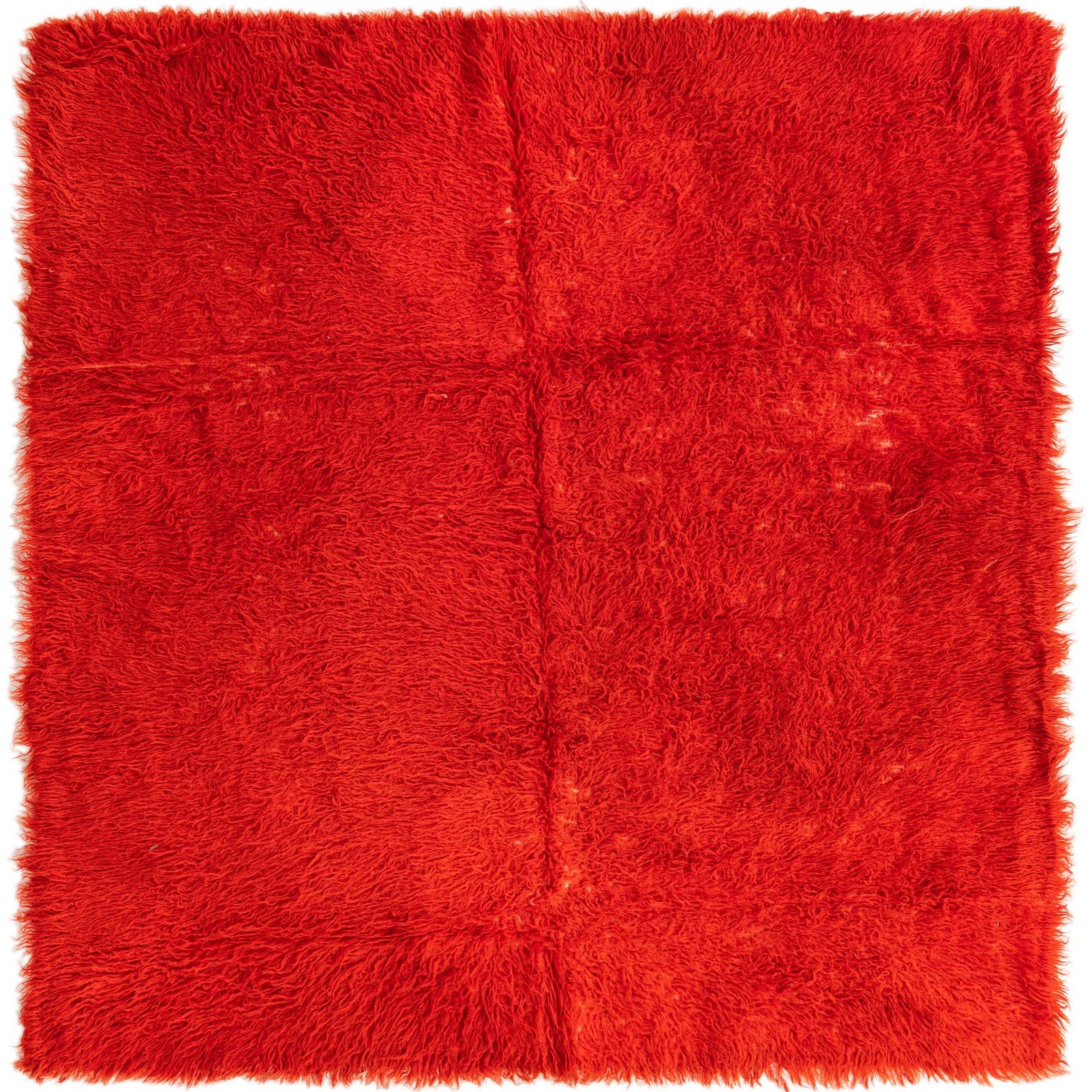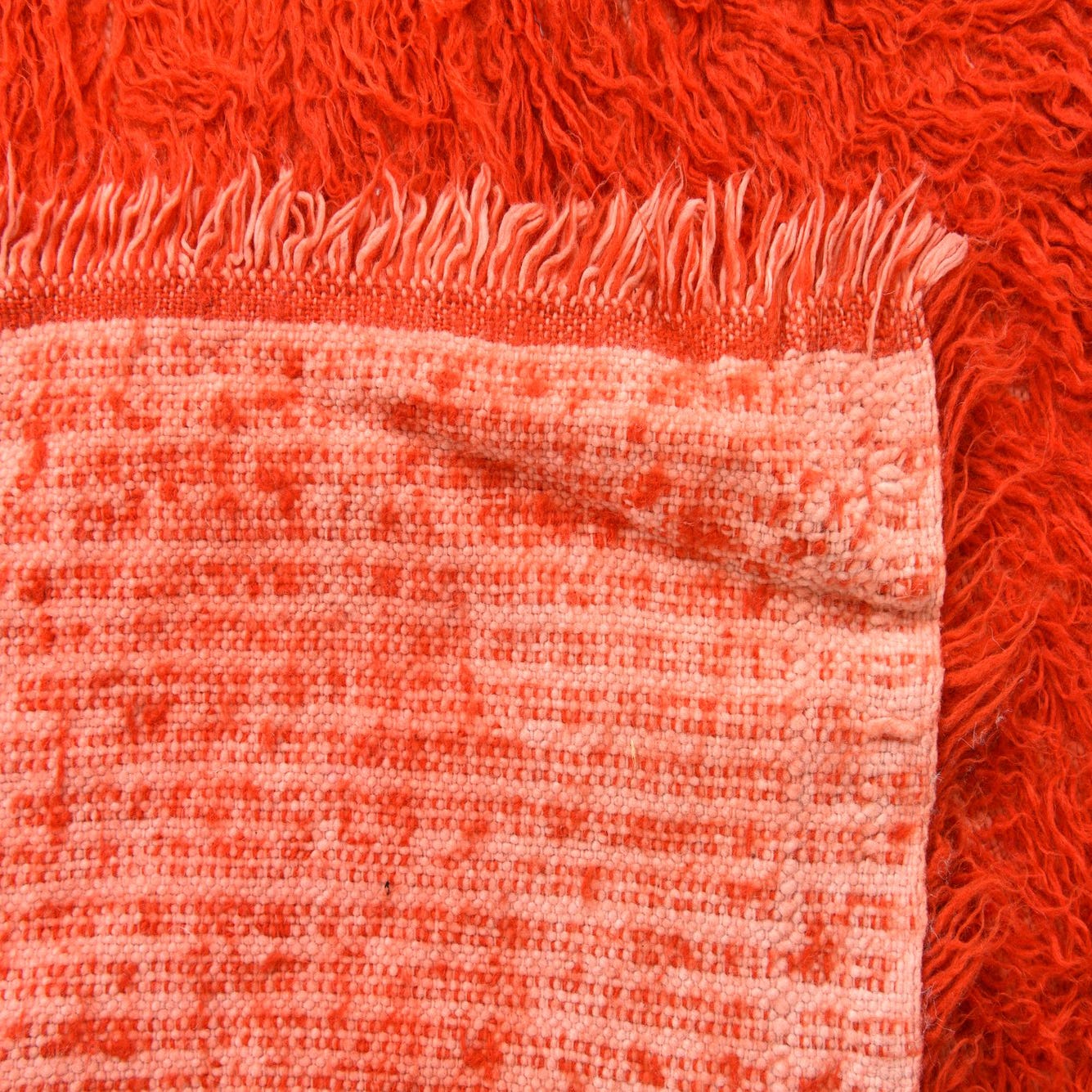 This piece is well-suited to a variety of decor scenarios. It would serve as a striking contrast in a minimalist setting, infusing warmth and a pop of color. In a bohemian-inspired space, it would complement an eclectic mix of textures and patterns. The rug's vibrant hue would also work well in a contemporary environment, providing a singular color statement within a restrained palette. Its texture and color depth might equally enhance a more traditional setting, serving as a singular warm tone against wood floors or as a harmonious element within a room featuring warm-toned furnishings and accessories.