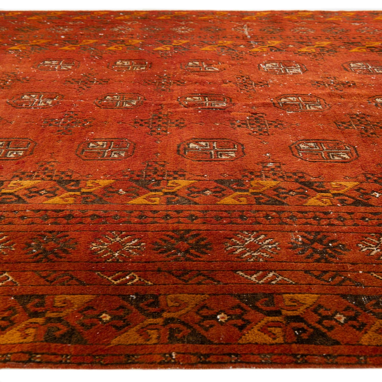 A 6x9 rectangular Ultra Vintage rug in shades of orange, featuring a distressed Persian pattern with geometric motifs and a decorative border.