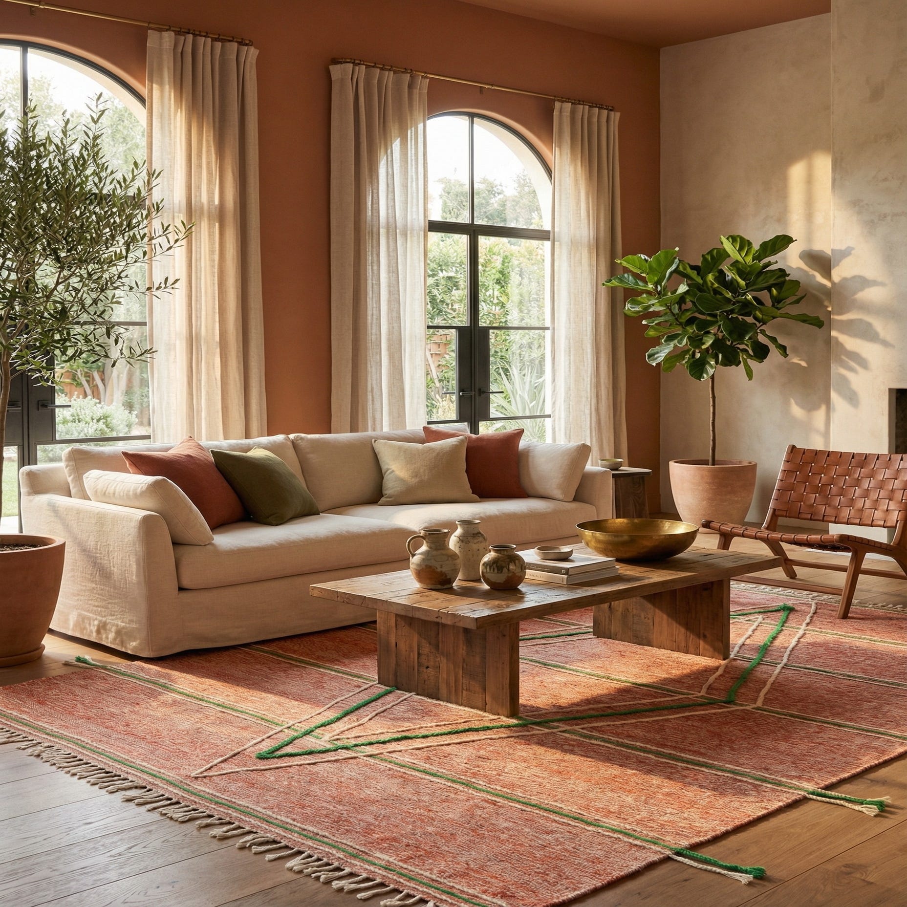 Suited for a variety of interior design scenarios, this rug would complement both modern and traditional spaces that embrace rich colors and artisanal craftsmanship. It could serve as a captivating focal point in a living room or dining area, harmonizing with natural wood furniture or contrasting beautifully against minimalist, contemporary decor. The rug's durability and timeless pattern make it an adaptable choice for high-traffic areas, bringing warmth and cultural sophistication to any interior.