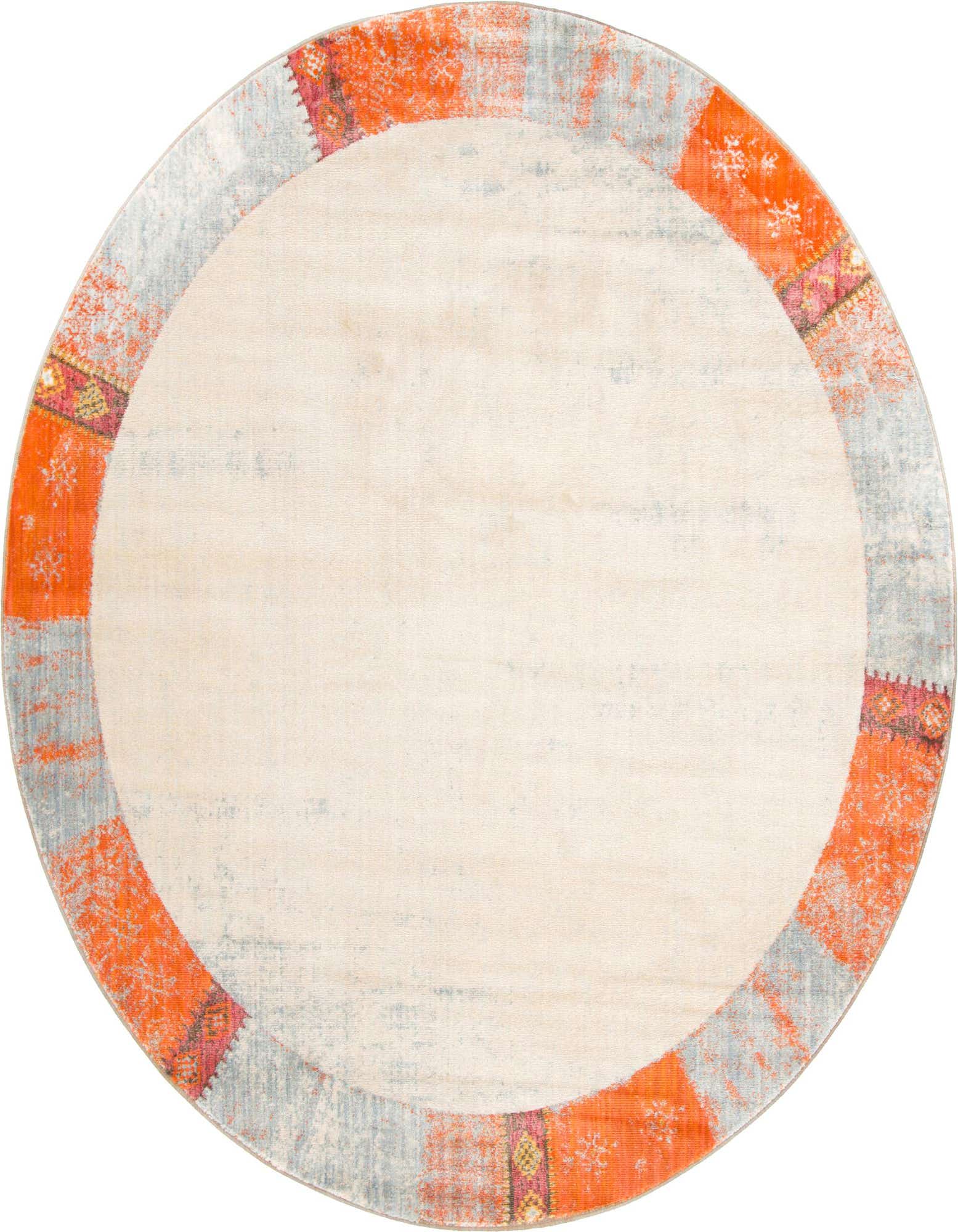 Primary color is Orange. Colors in this rug include: Orange, Blue, Brown, Cream, Purple.