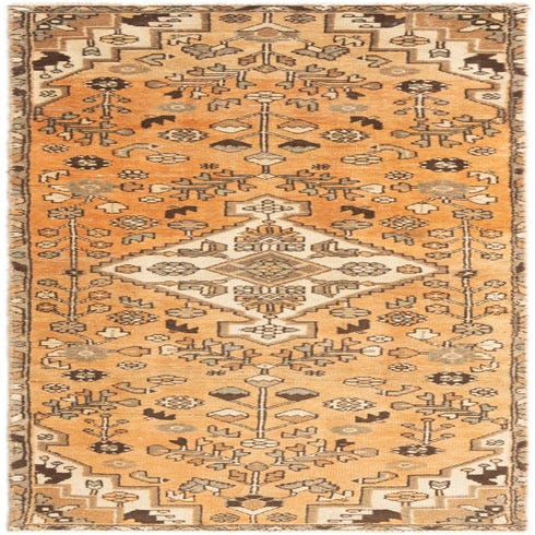 Primary color is Orange. Colors in this rug include: Orange, Brown, Beige.