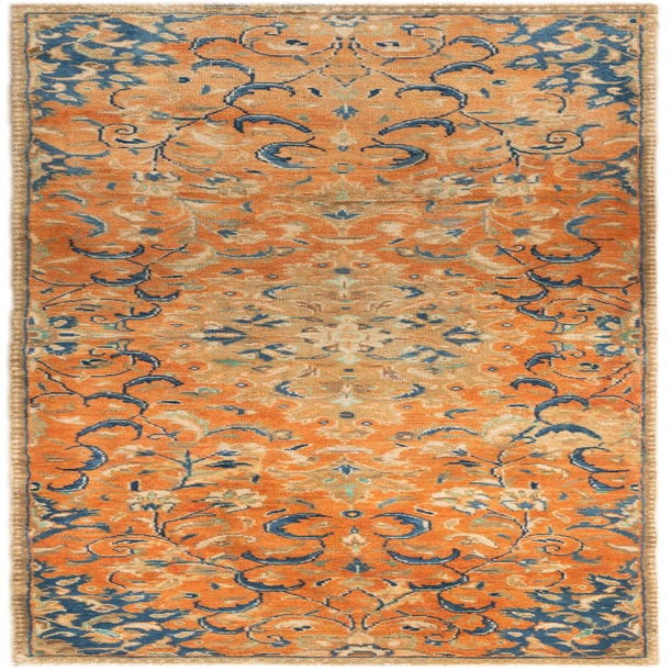 Primary color is Orange. Colors in this rug include: Orange, Beige, Blue.