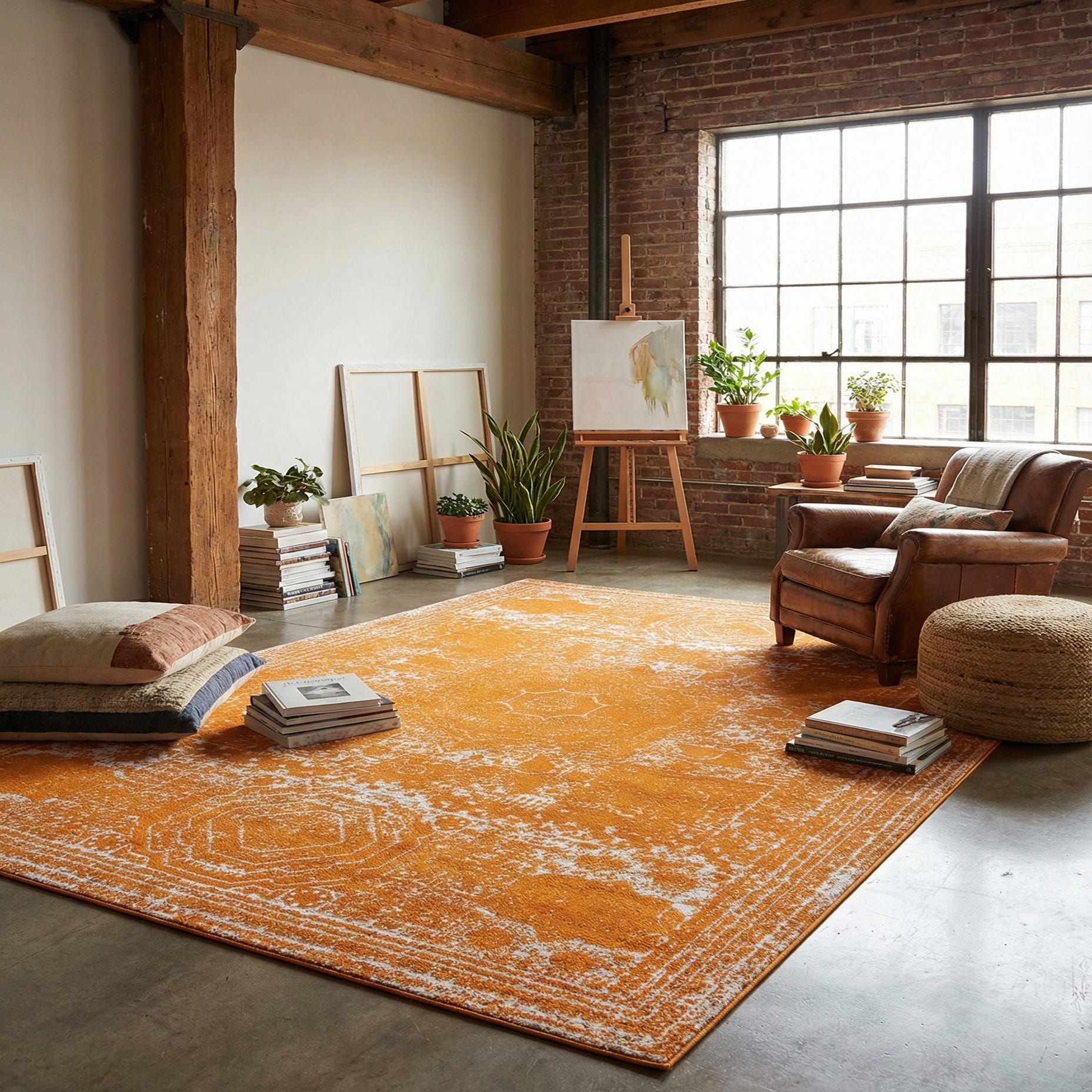 Primary color is Orange. Colors in this rug include: Orange, Ivory.