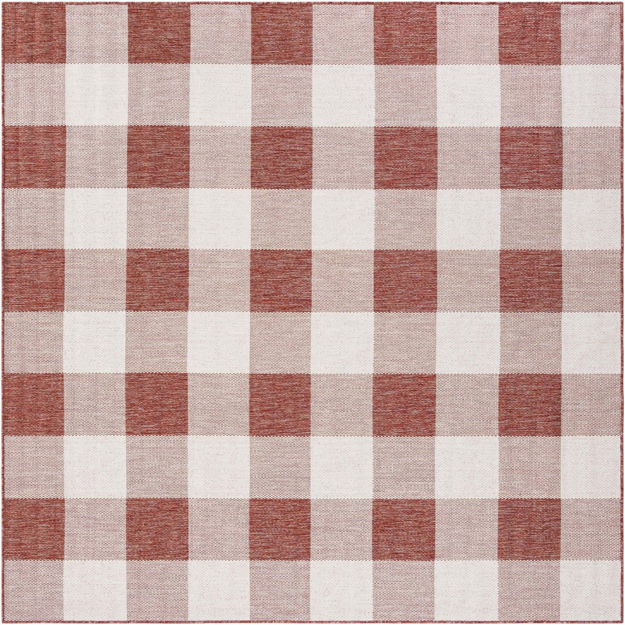 From the Outdoor Checkered Collection, this Machine Woven 8 Ft Square rug features a bold checkered pattern that brings a vibrant yet harmonious contrast to any setting.