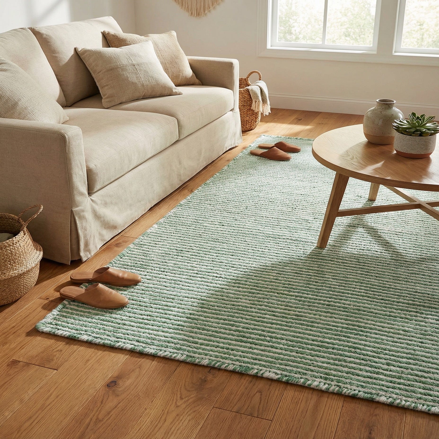 Primary color is Palm Green. Colors in this rug include: Palm Green, Ivory.