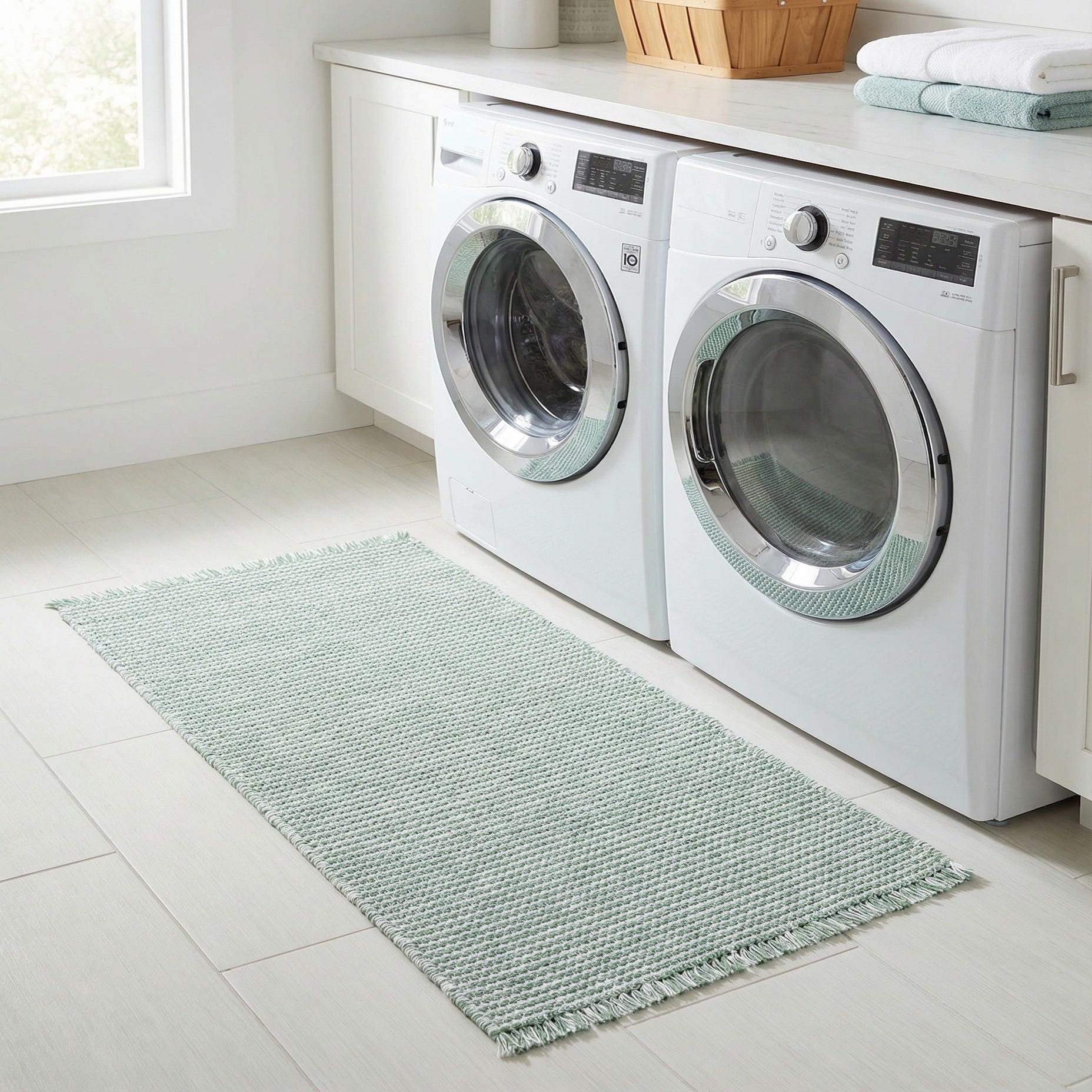 Primary color is Palm Green. Colors in this rug include: Palm Green, Ivory.