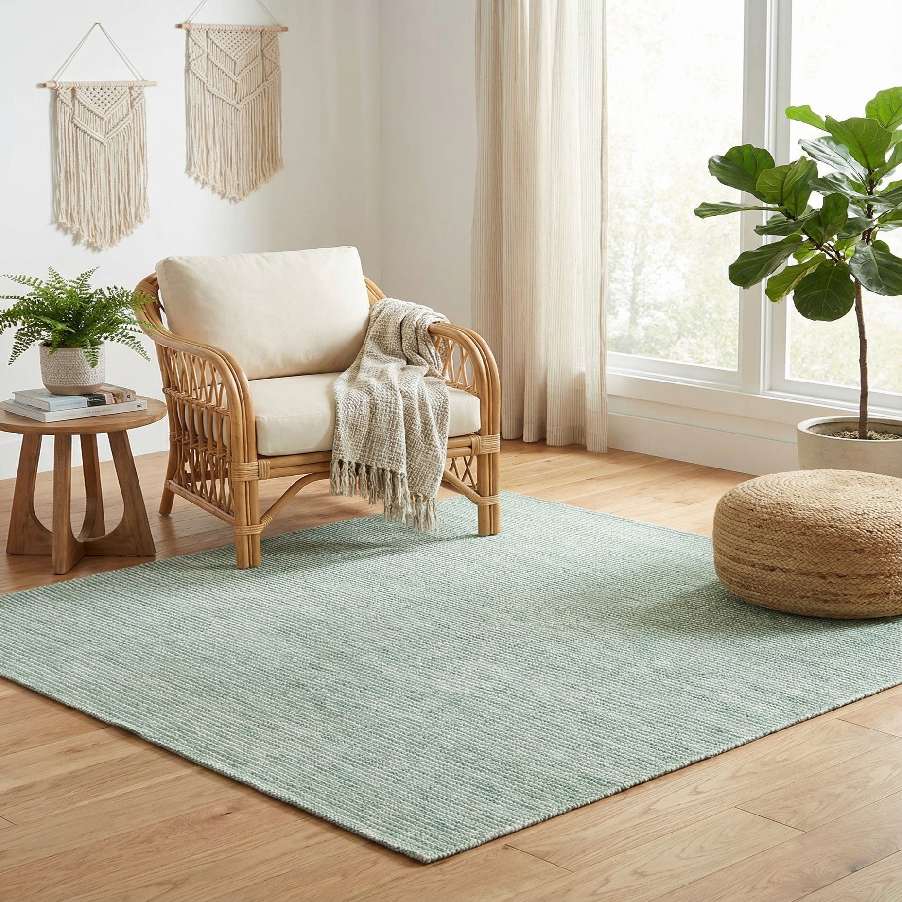 Primary color is Palm Green. Colors in this rug include: Palm Green, Ivory.