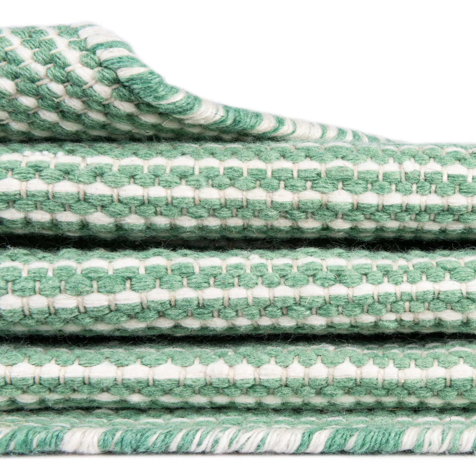 A 5x8 rectangular Palm Green modern flatweave rug, suitable for indoor or outdoor use, showcasing its textured pile.