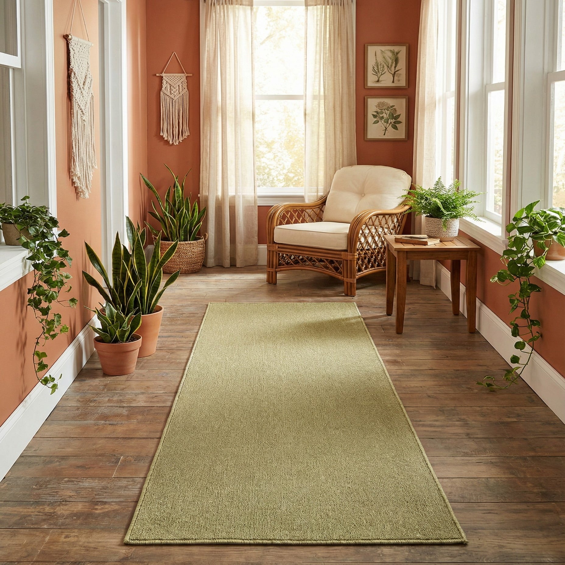 This runner is well suited to hallways, entryways, and narrow kitchens where a touch of color and a streamlined profile are needed. It pairs naturally with light wood floors, white or cream cabinetry, woven accents, and minimalist or Scandinavian furnishings, and works equally well layered over a larger neutral rug to define a passage or walkway.