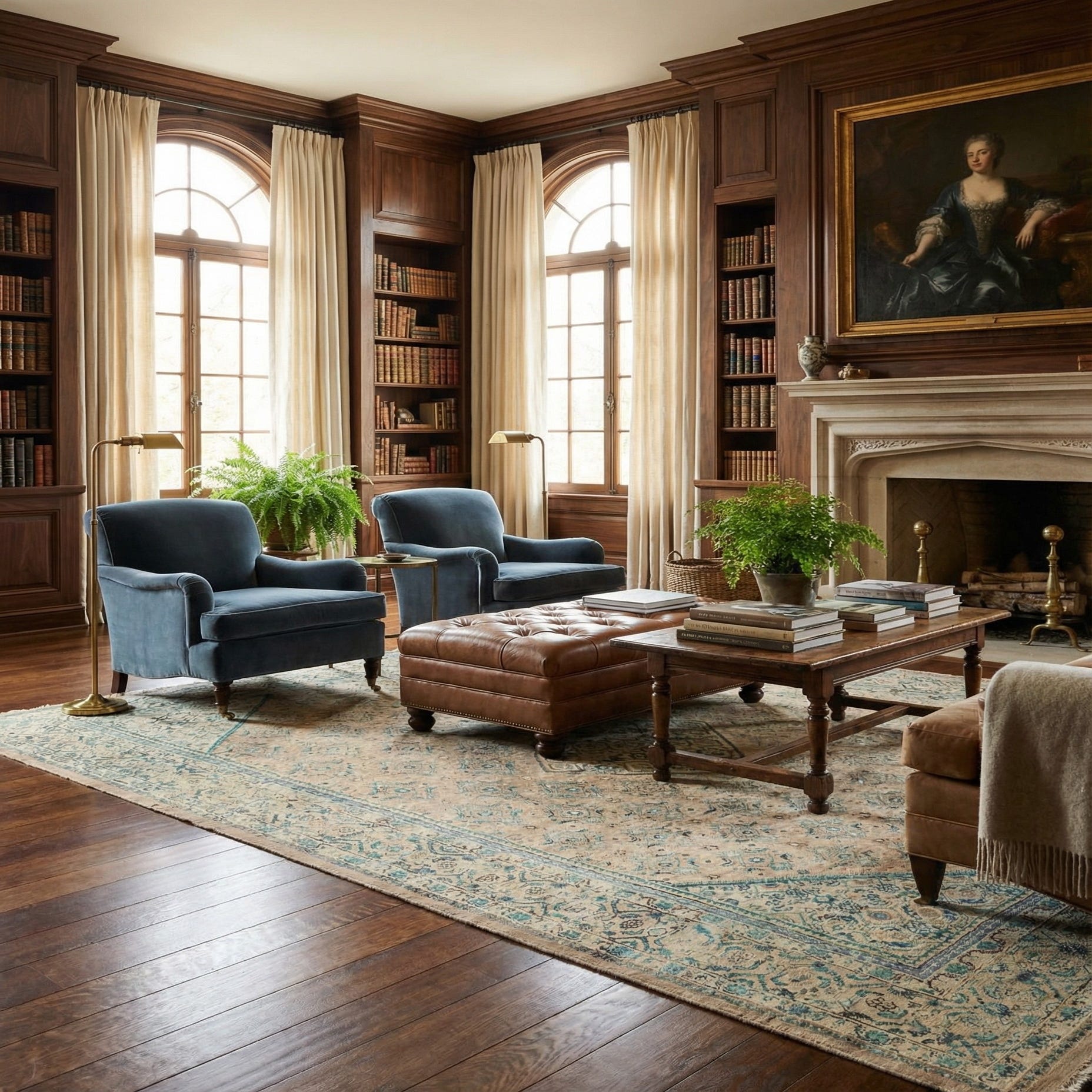 The presence of fringe on the edges provides a classic finish to the rug, resonating with the authentic aesthetic of its era. Given its color palette and timeless design, this rug is well-suited for placement in both traditional and transitional spaces, complementing wood furnishings, leather accents, and rooms with a neutral color scheme. Its gentle color transitions allow it to adapt seamlessly to various decor styles, from a formal dining room to a sophisticated living space or a serene bedroom setting.