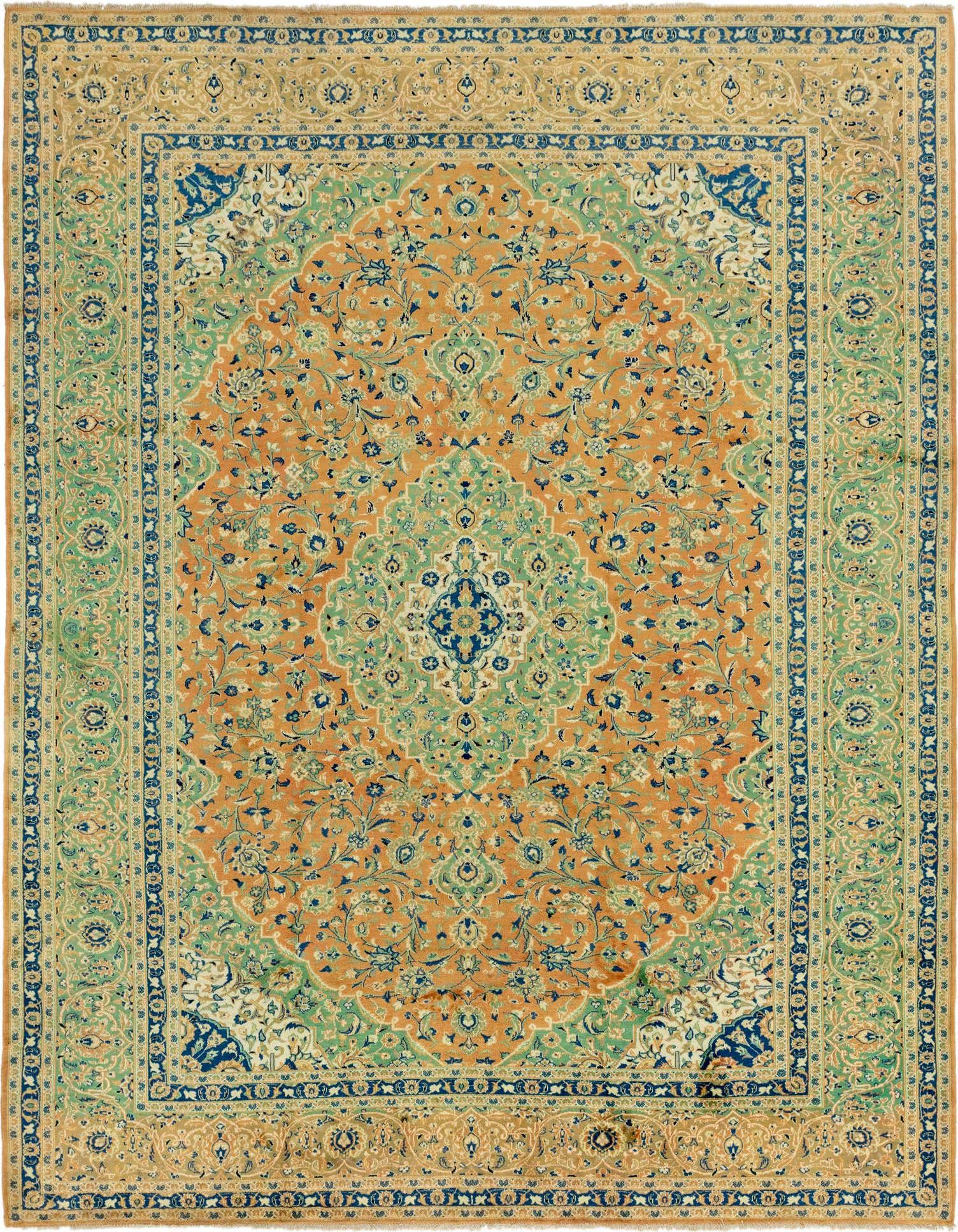 10' x 13' 2 Hand Knotted Kashan Persian Wool Rug