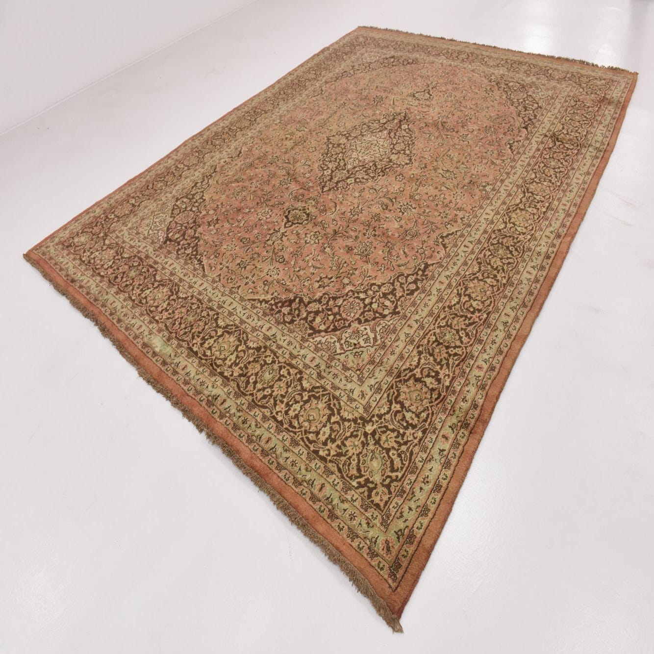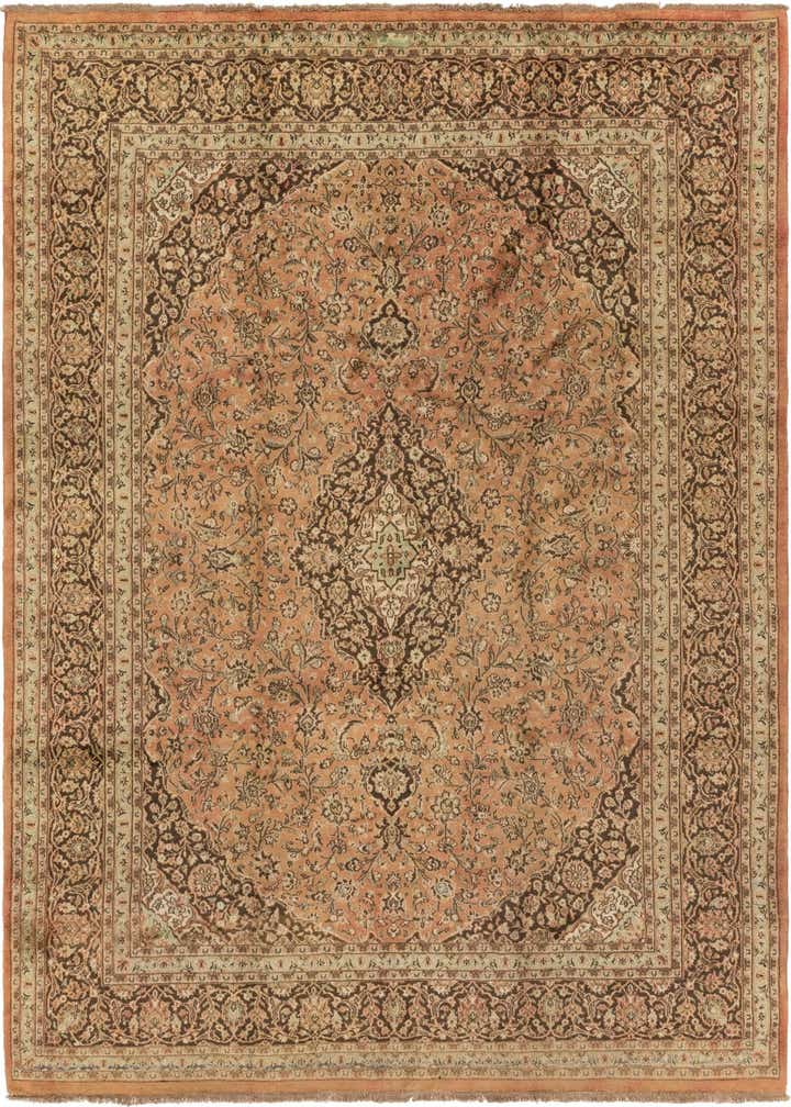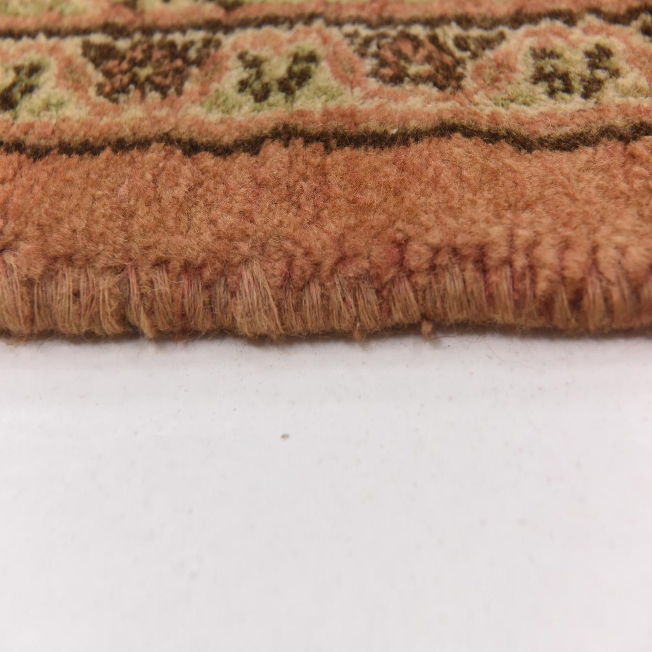 Primary color is Peach. Colors in this rug include: Peach, Beige, Brown, Green, Light Green, Tan.