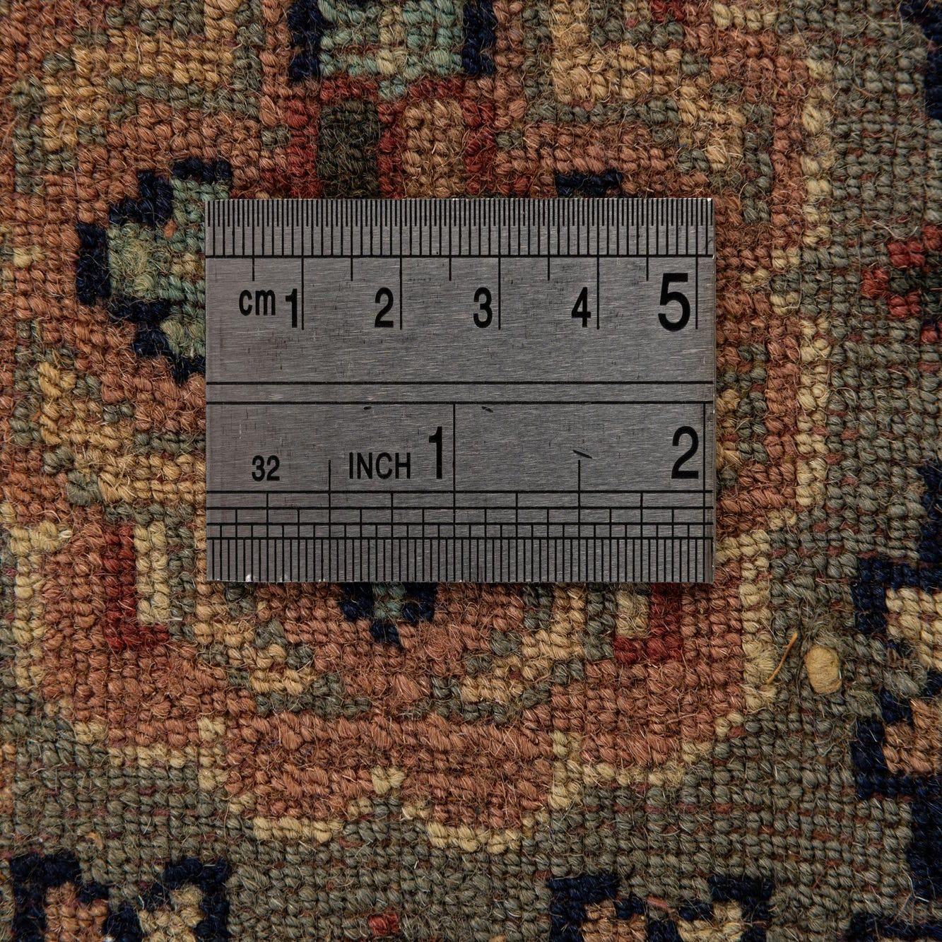 Primary color is Peach. Colors in this rug include: Peach, Green, Navy Blue, Olive, Cream, Light Blue.