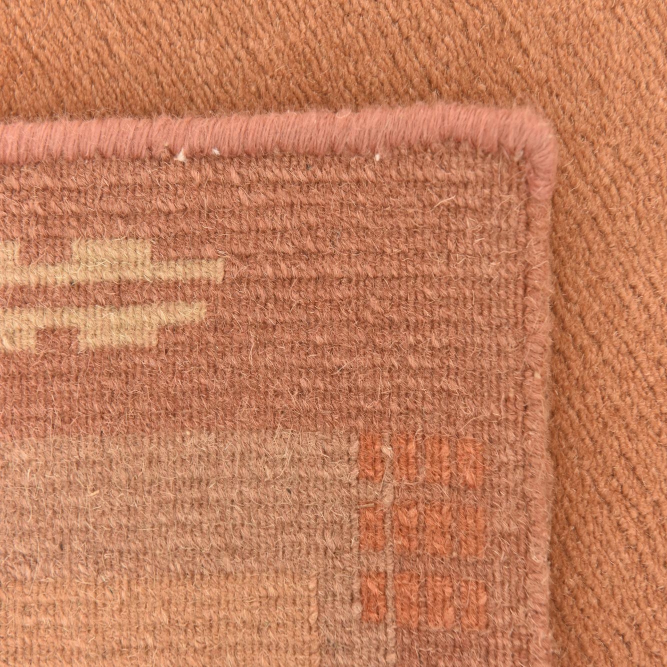 Primary color is Peach. Colors in this rug include: Peach, Beige, Burgundy, Red.