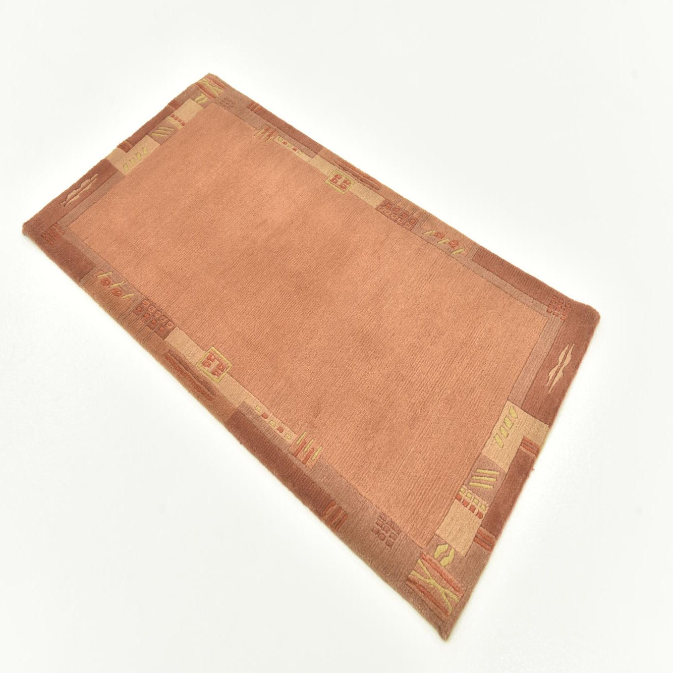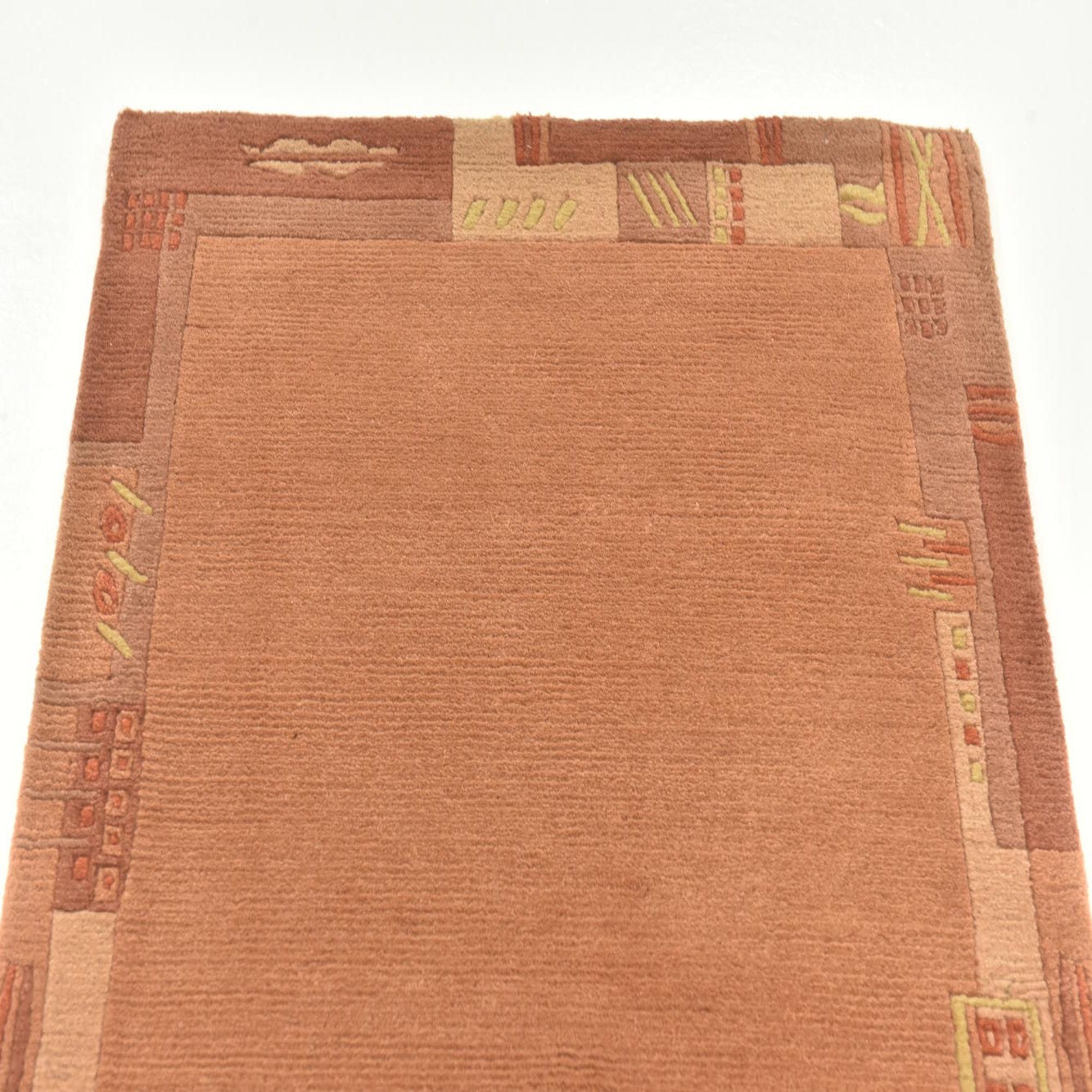 A 3x5 rectangular Nepal rug from Rugs.com, featuring a solid orange field with a modern abstract border in varying shades of orange, brown, and beige.