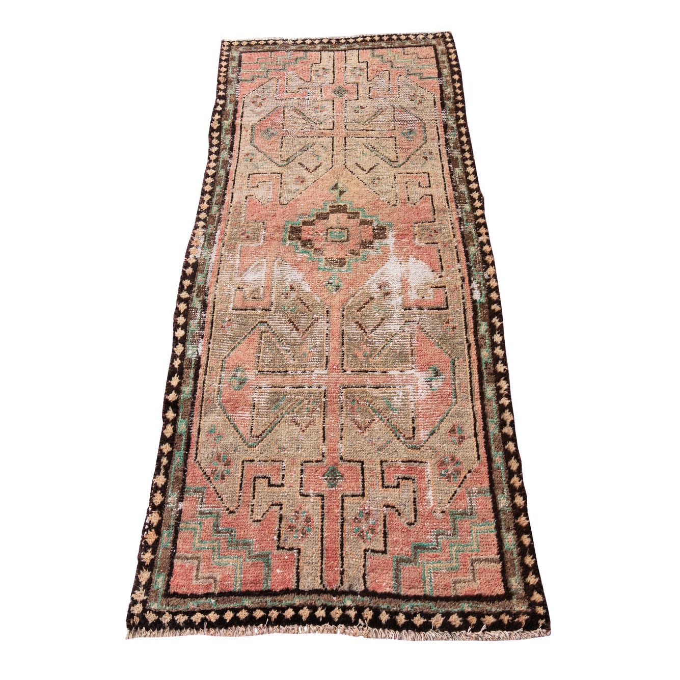 Primary color is Peach. Colors in this rug include: Peach, Light Brown, Green, Brown.