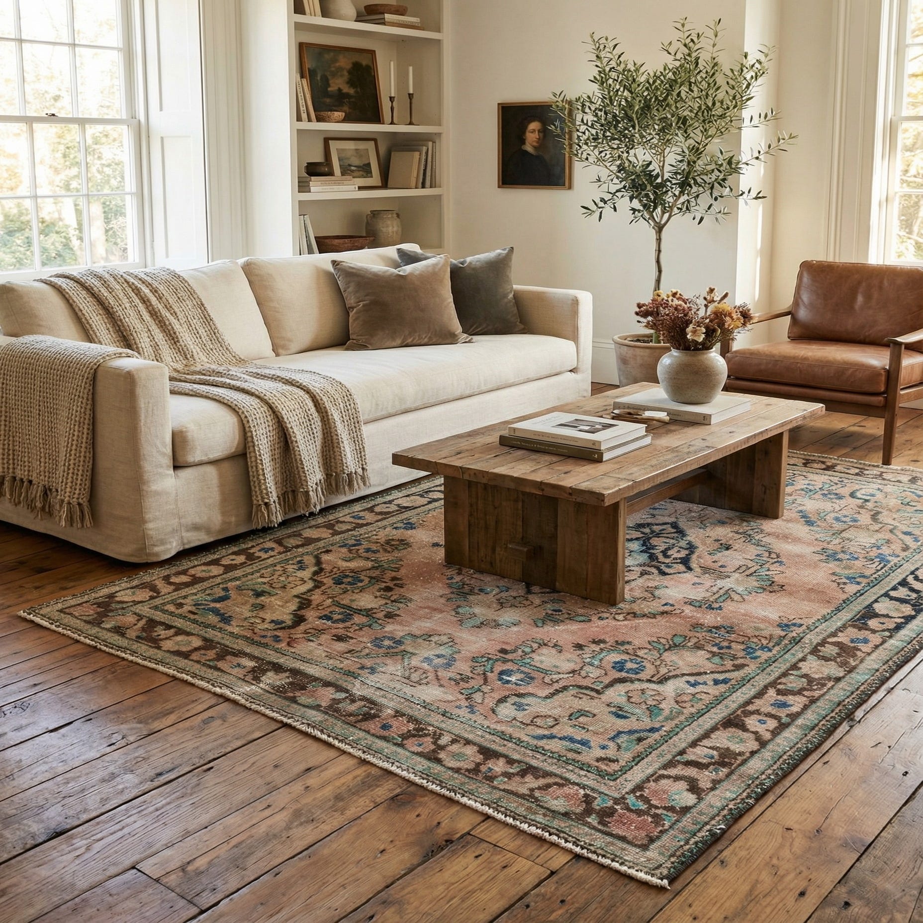 4' 4 x 6' 6 Hand Knotted Ultra Vintage Persian Wool Rug