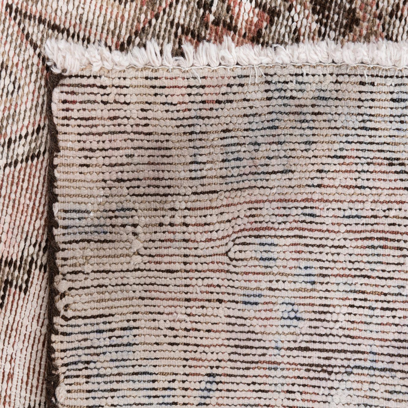 Primary color is Peach. Colors in this rug include: Peach, Brown, Ivory.