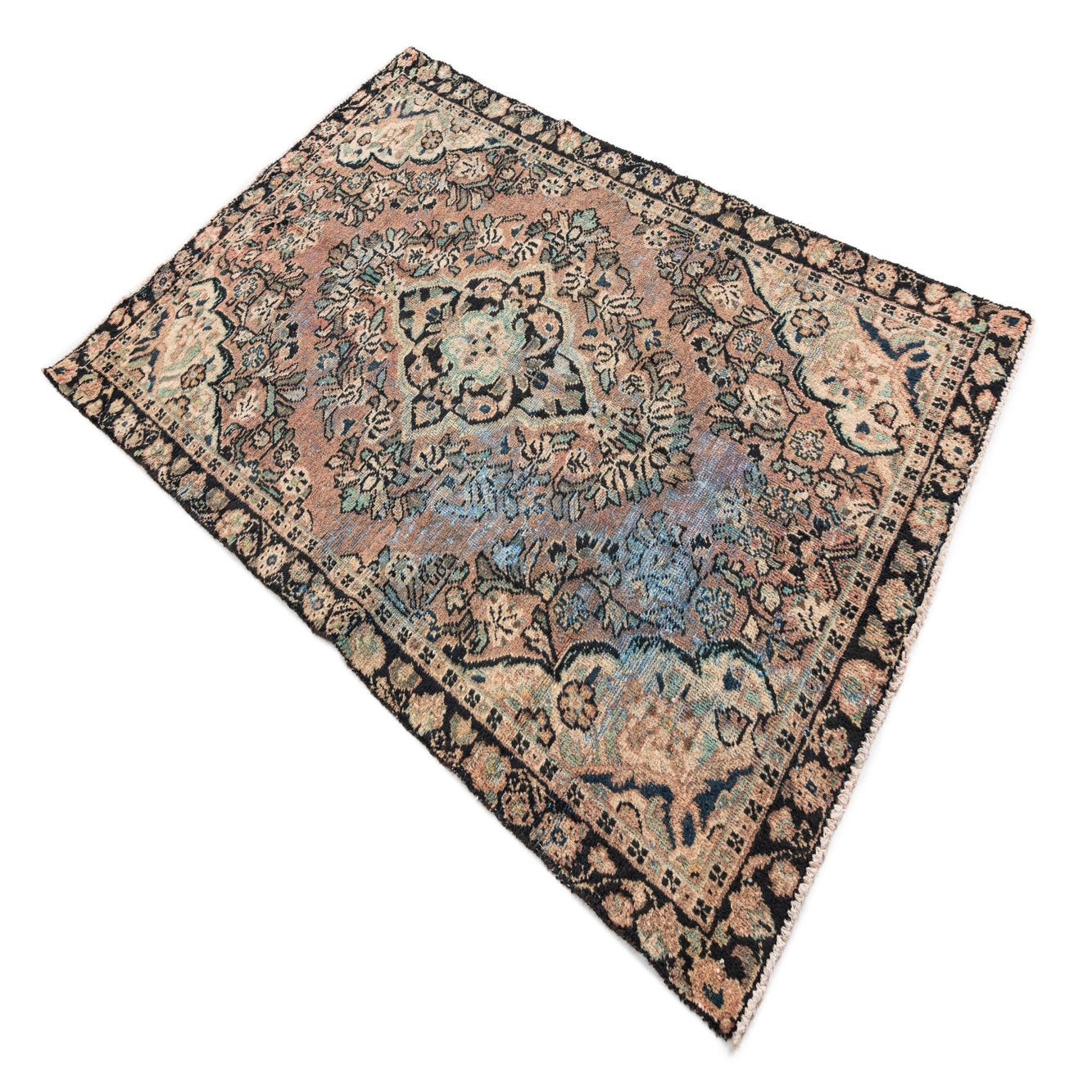 This Persian Ultra Vintage rug is an antique Persian Rug that has been washed, over-dyed, and then shaved down to a low pile. Look at the detail pictures to fully appreciate the uniqueness of this piece.
