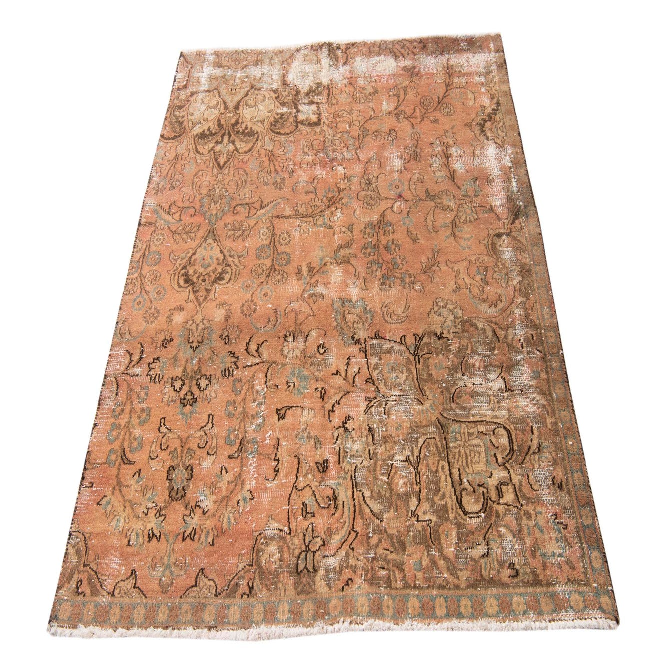 This Persian Ultra Vintage rug is an antique Persian Rug that has been washed, over-dyed, and then shaved down to a low pile. Look at the detail pictures to fully appreciate the uniqueness of this piece.