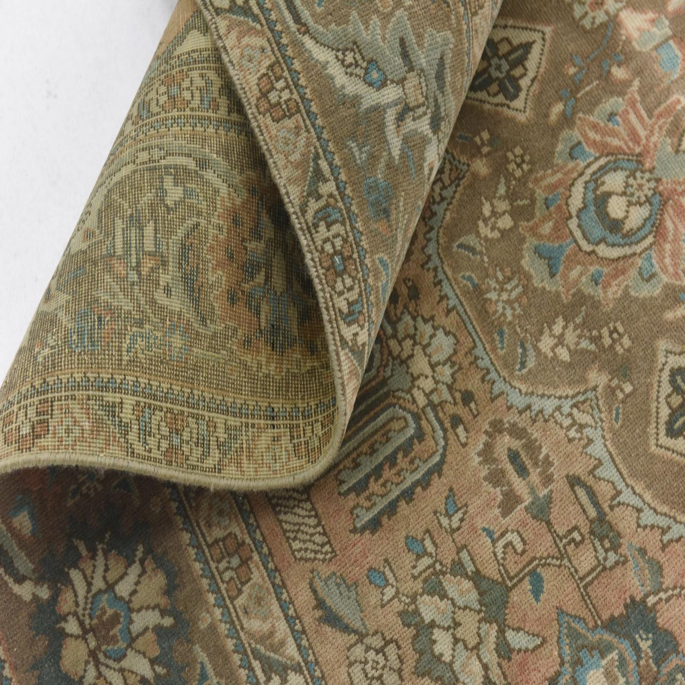 Primary color is Peach. Colors in this rug include: Peach, Beige, Brown, Green, Ivory, Light Green, Light Brown.