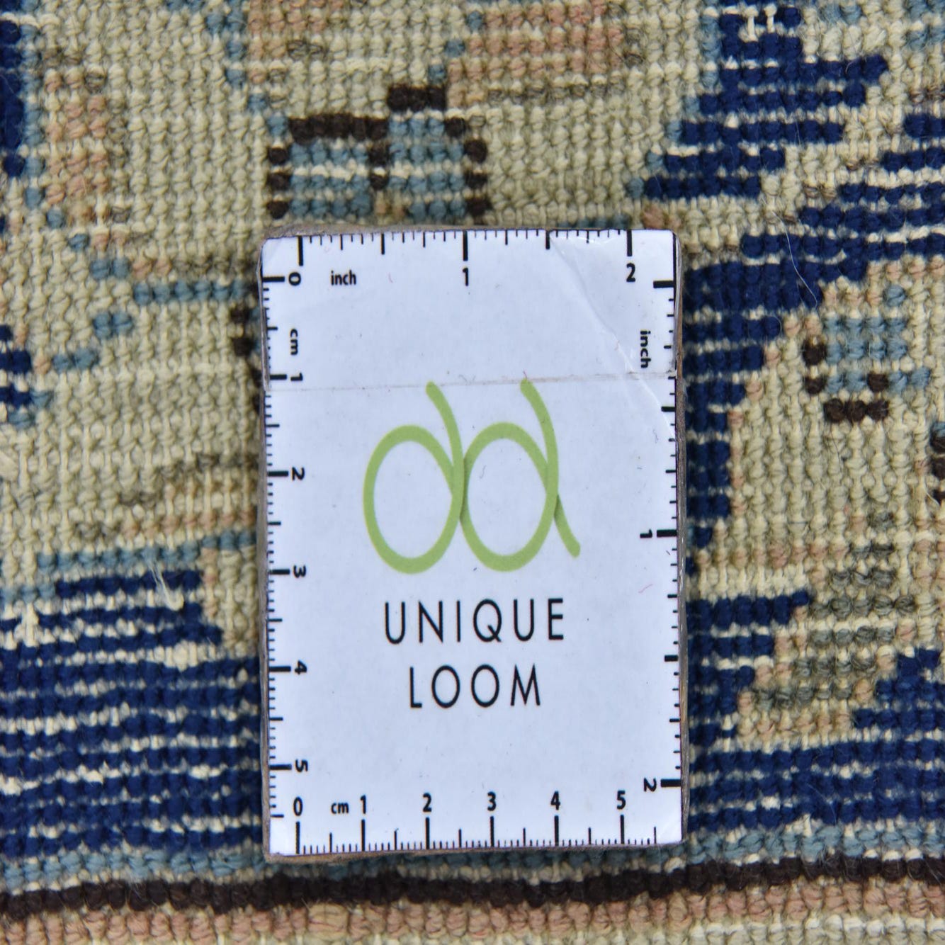 This hand-knotted piece from the Ultra Vintage Collection is crafted from 100% wool, offering a dense and comfortable texture. The rug measures 8x12 feet, providing substantial coverage for larger spaces. The design features a peach background complemented by an ornamental pattern with hues of blue, brown, ivory, and navy blue, harmoniously blending in a classic yet timeless display. Intricate floral and botanical motifs create a focal point in the rug's center, framed by an elegant border that accentuates its traditional aesthetics.