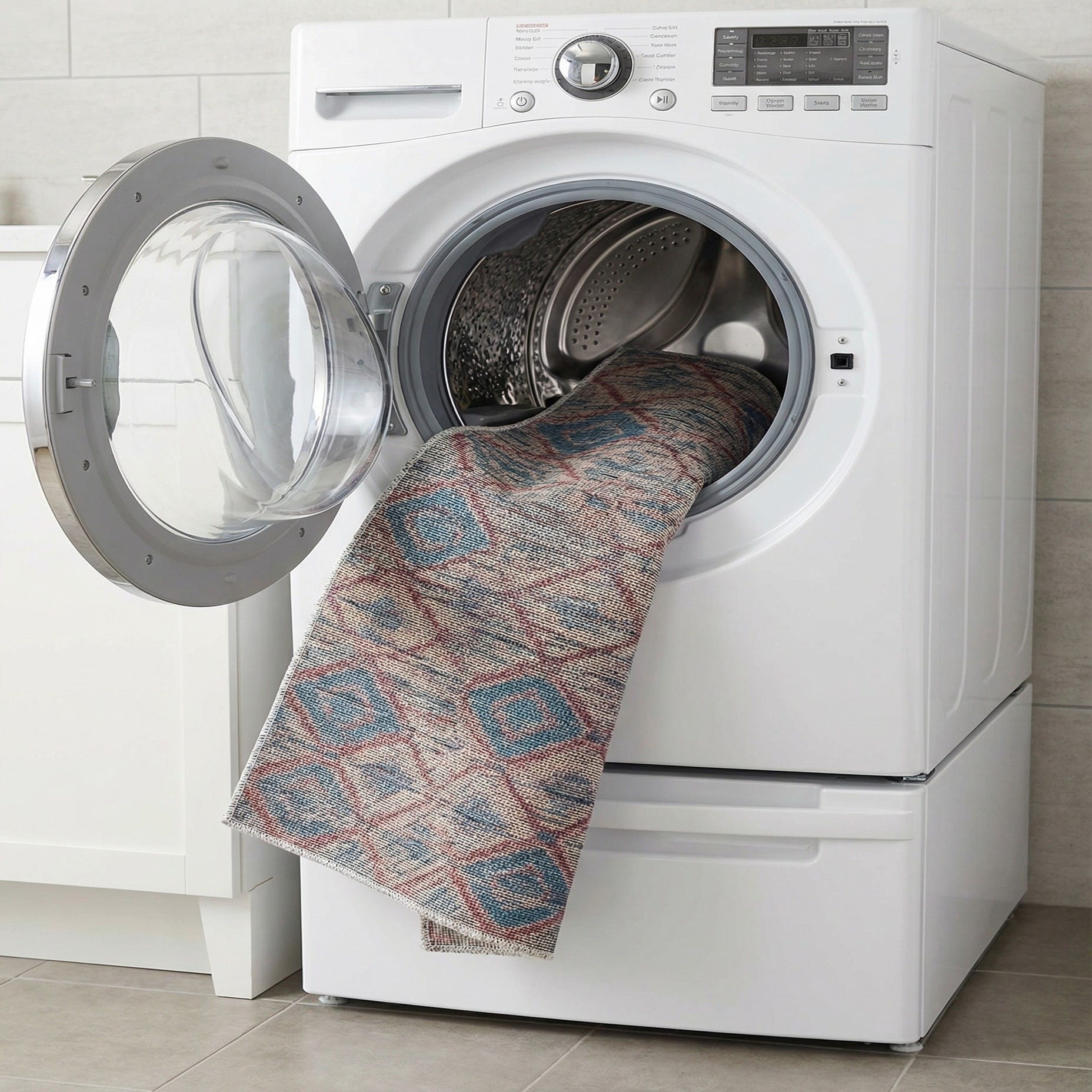 This runner works well in narrow traffic areas where a long, grounded element is needed — think hallways, entry corridors, or alongside a kitchen island. It pairs naturally with warm wood tones and muted neutrals, and also complements navy or blue upholstery for a coordinated palette. The patterned yet softened colorway suits transitional, casual contemporary, or eclectic interiors where layered textures and subtle color variation are welcome.