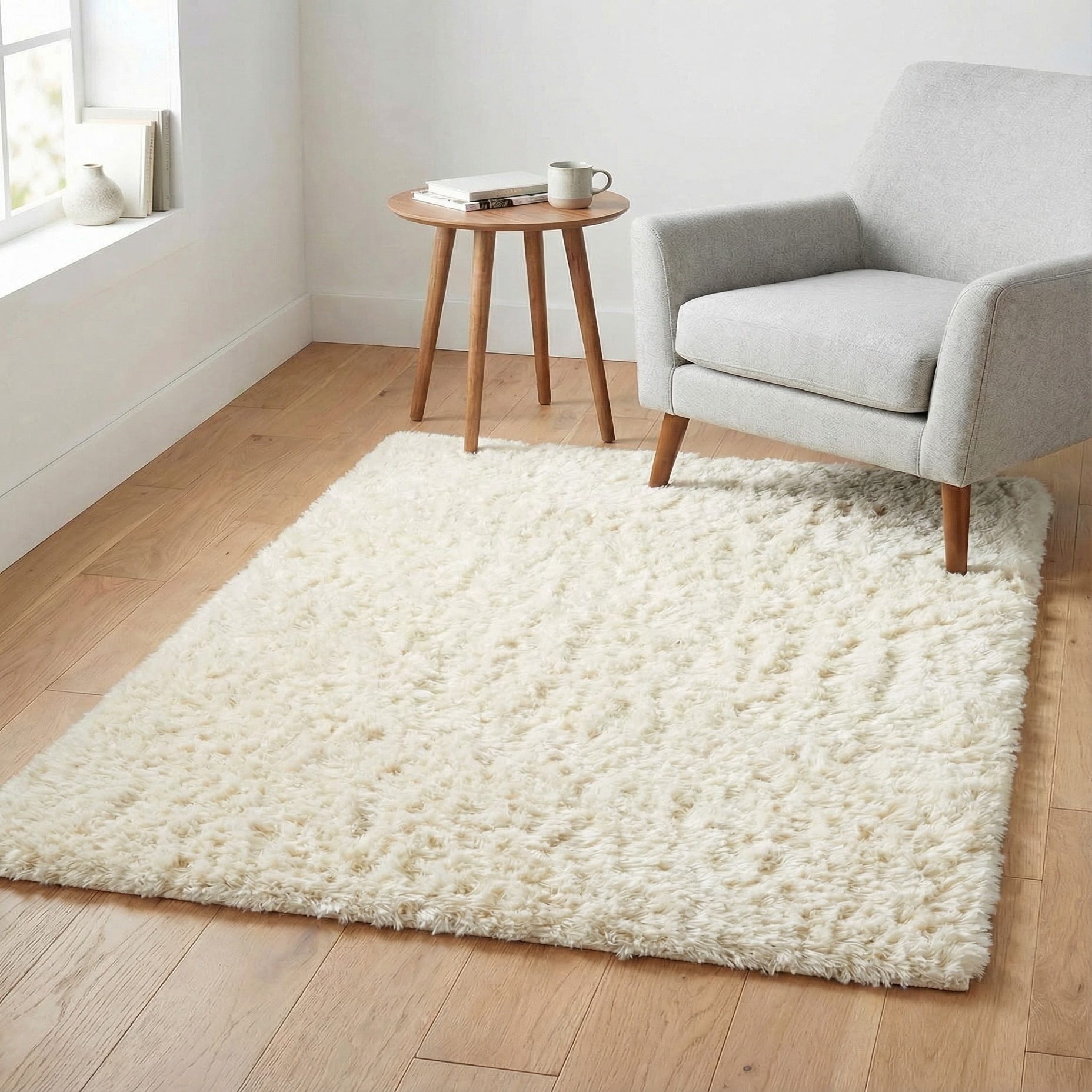 Machine made from 100% polyester, the pile is dense and plush to the touch, offering a cushioned feel underfoot. Place it beside the bed, under a small coffee table, or layered in a cozy reading corner to add softness and warmth. Its neutral color and textured surface pair well with Scandinavian or modern farmhouse schemes, contemporary minimalist rooms that need a softer element, or casual boho spaces that emphasize layered textiles.