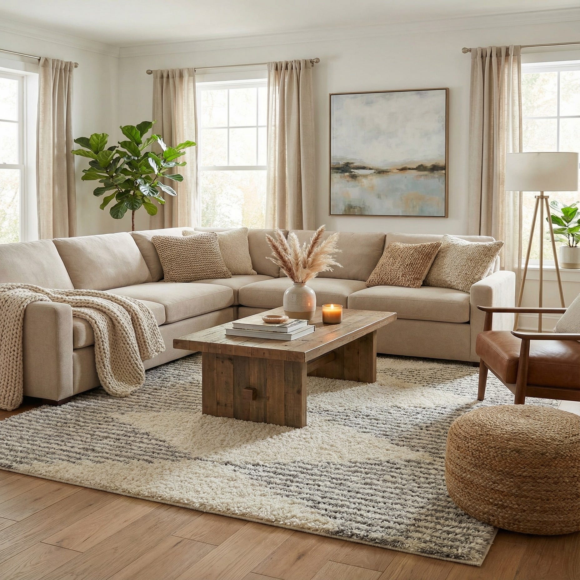 A square 8'x8' gray and ivory shag rug with a modern geometric diamond pattern, suitable for a living room or bedroom.