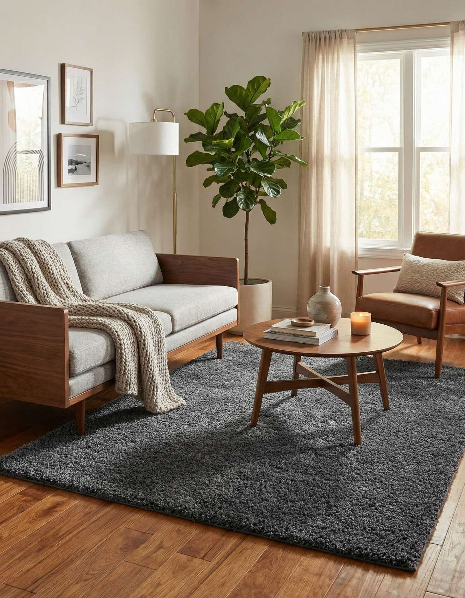 This rug suits contemporary, transitional, and minimalist interiors where a simple, tactile foundation is needed. Place it to anchor a living room seating area, add layered softness to a bedroom, or define a cozy reading corner—pairing particularly well with light to medium wood floors, metal accents, and patterned pillows or throws for contrast. Its neutral gray tone provides a calm backdrop that complements both muted and more vibrant décor palettes.