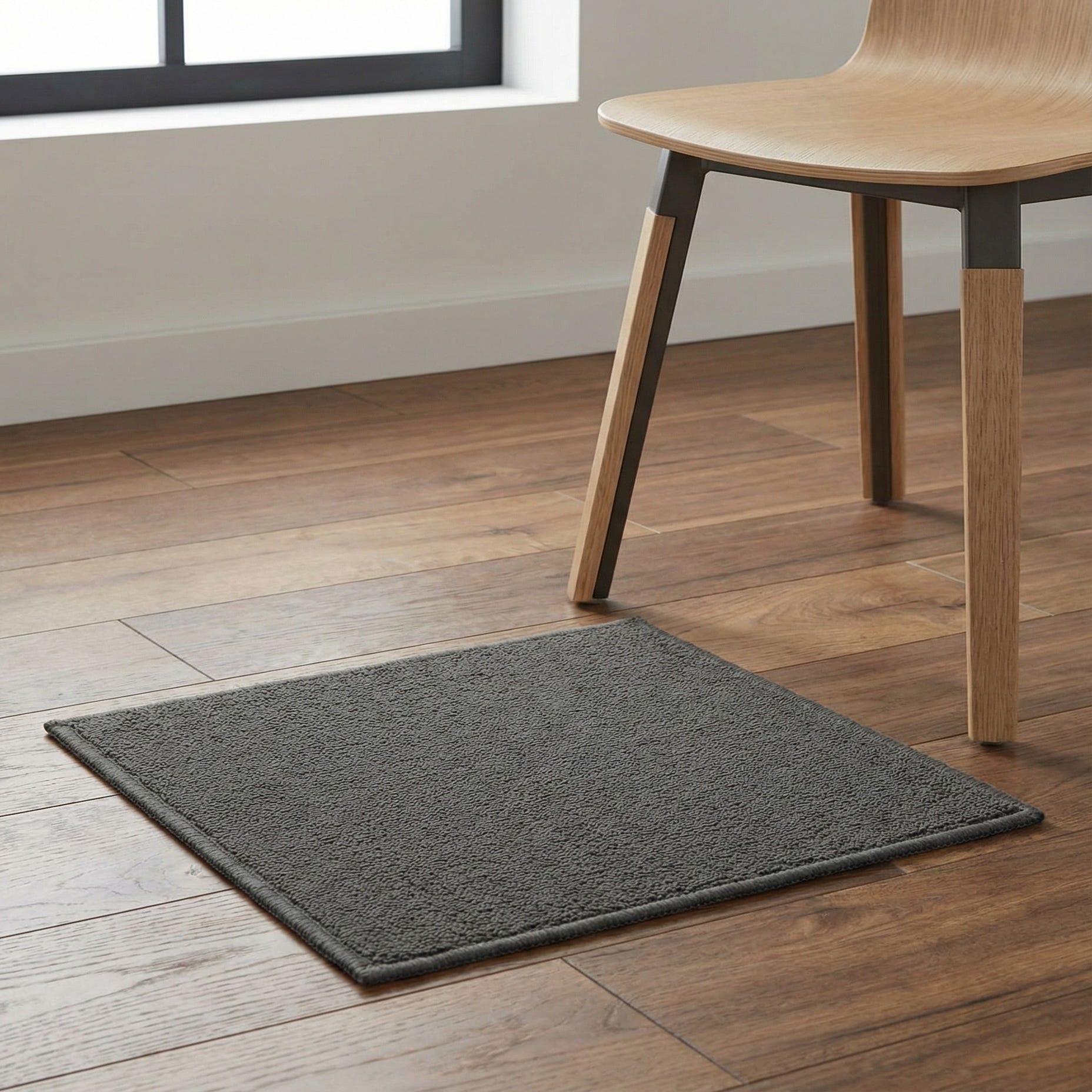 Designed for everyday settings, this sample is a practical choice for modern, minimalist, or industrial interiors where a neutral anchor is needed. Lay it beneath a small seating area, use it to test color coordination in a bedroom or home office, or place it near an entry to preview how the tone works with wood and metal finishes. The machine-made polypropylene construction makes it suitable for regular use, and the neutral Pewter Gray pairs well with warm woods, black metal accents, and both cool and warm textiles.