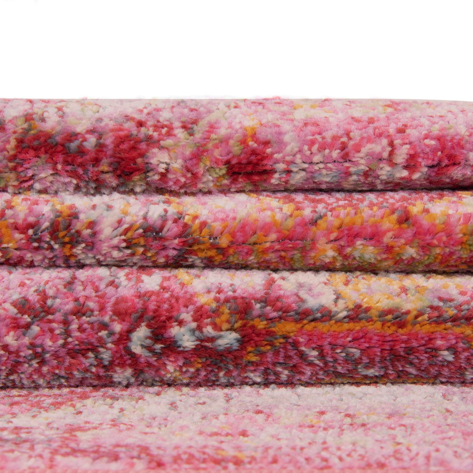 Primary color is Pink. Colors in this rug include: Pink, Burgundy, Ivory, Olive, Orange, Purple, Red.