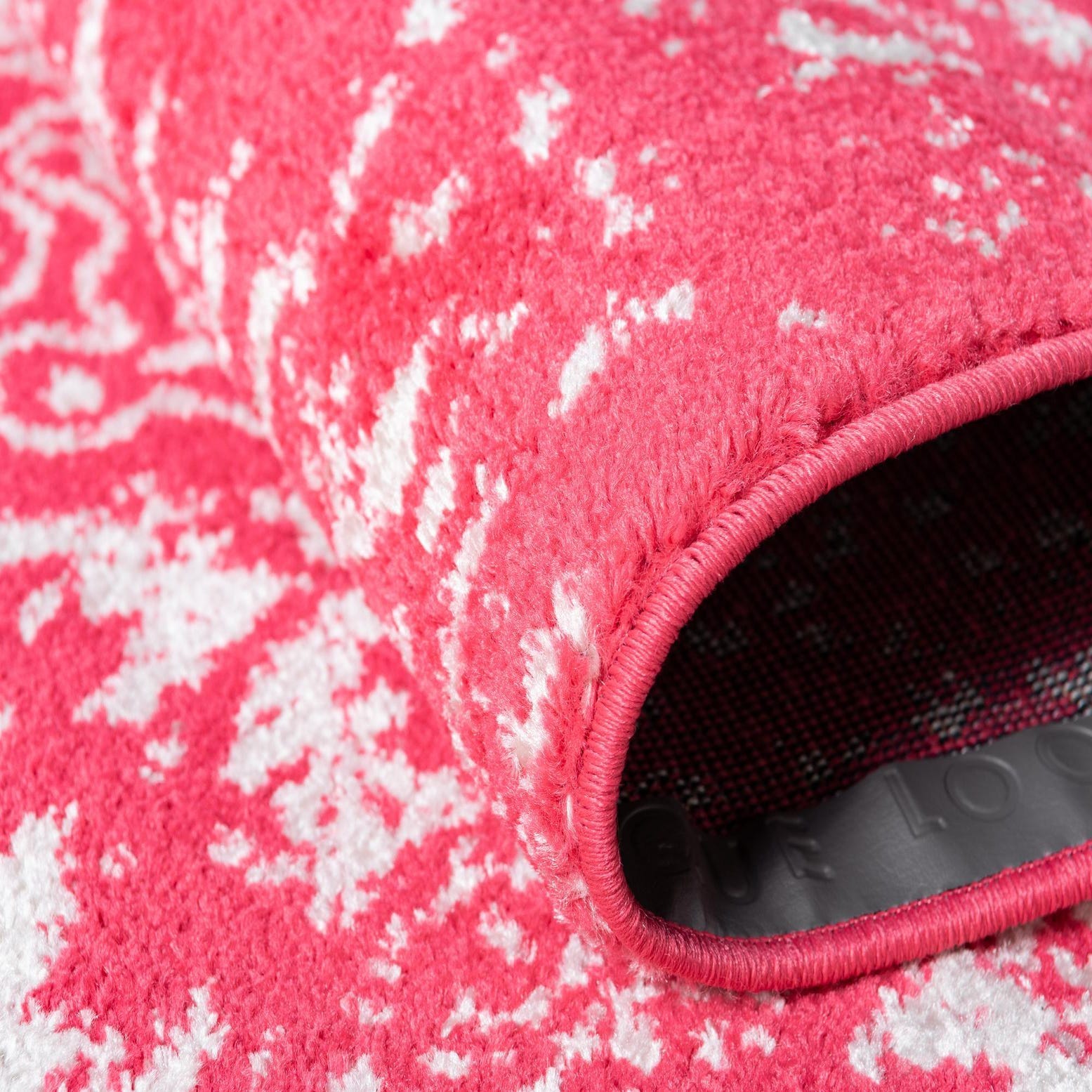The Arlington collection showcases a vibrant 10x14 polypropylene rug that brings a pop of color and a touch of vintage charm to any space. The rug features a dynamic pink background with a traditional ivory pattern, creating a bold contrast that is both eye-catching and inviting. The machine-woven construction provides durability while the material offers ease of maintenance.