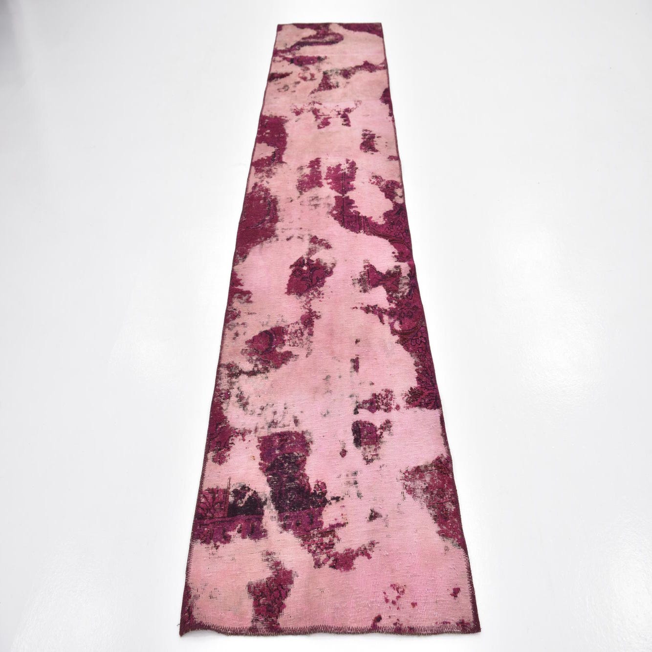 This runner would complement a variety of interior spaces where its elongated shape can be fully appreciated. It would sit well in a hallway, alongside a dining table, or in a narrow living space, enhancing both contemporary and traditional decors. In rooms that feature neutral or muted color schemes, it can serve as a statement piece, while spaces that embrace bolder aesthetics will find the rug's vintage charm a complementary addition.