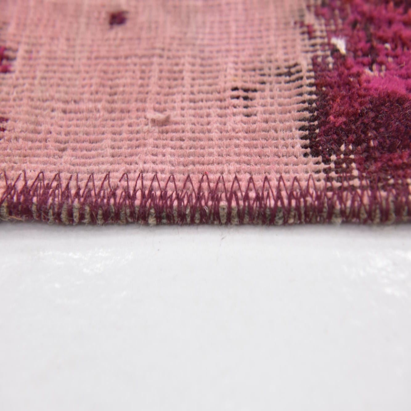 This Ultra Vintage collection runner is a hand-knotted showcase of craftsmanship in 100% wool, offering a soft and textured feel underfoot. The piece spans 11 feet in length and presents a visual narrative of antiquity through its color palette and pattern. A pink background is brought to life with hues of red, burgundy, black, and touches of peach, resulting in a rug that evokes a sense of history while remaining versatile for modern home styling.