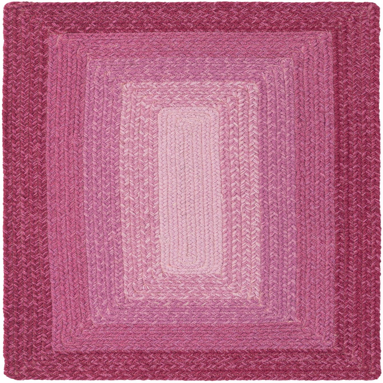 A 2x3 rectangular hand-braided wool rug featuring a modern stripe pattern with varying shades of pink, from light to dark.