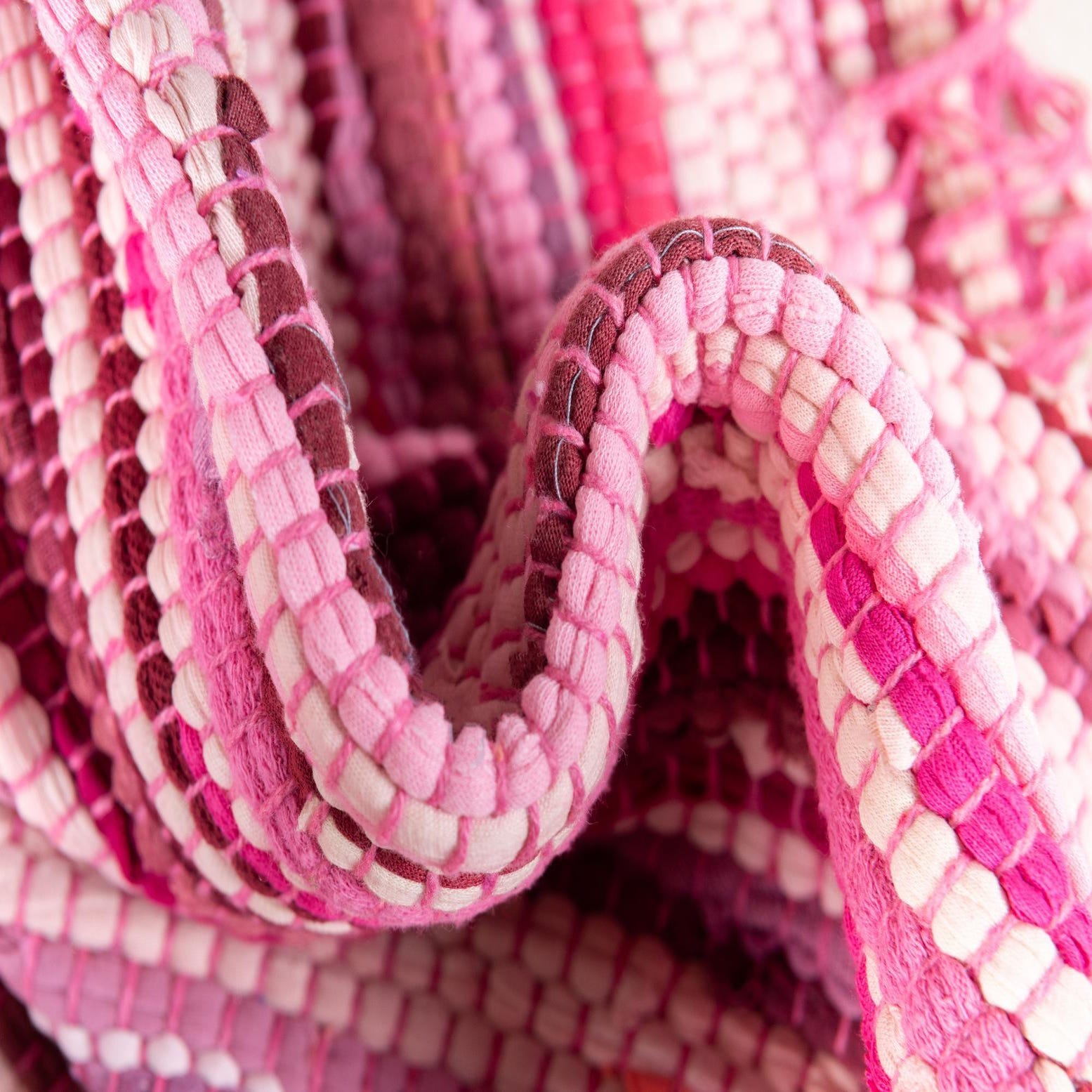 Primary color is Pink. Colors in this rug include: Pink, Burgundy, Purple.