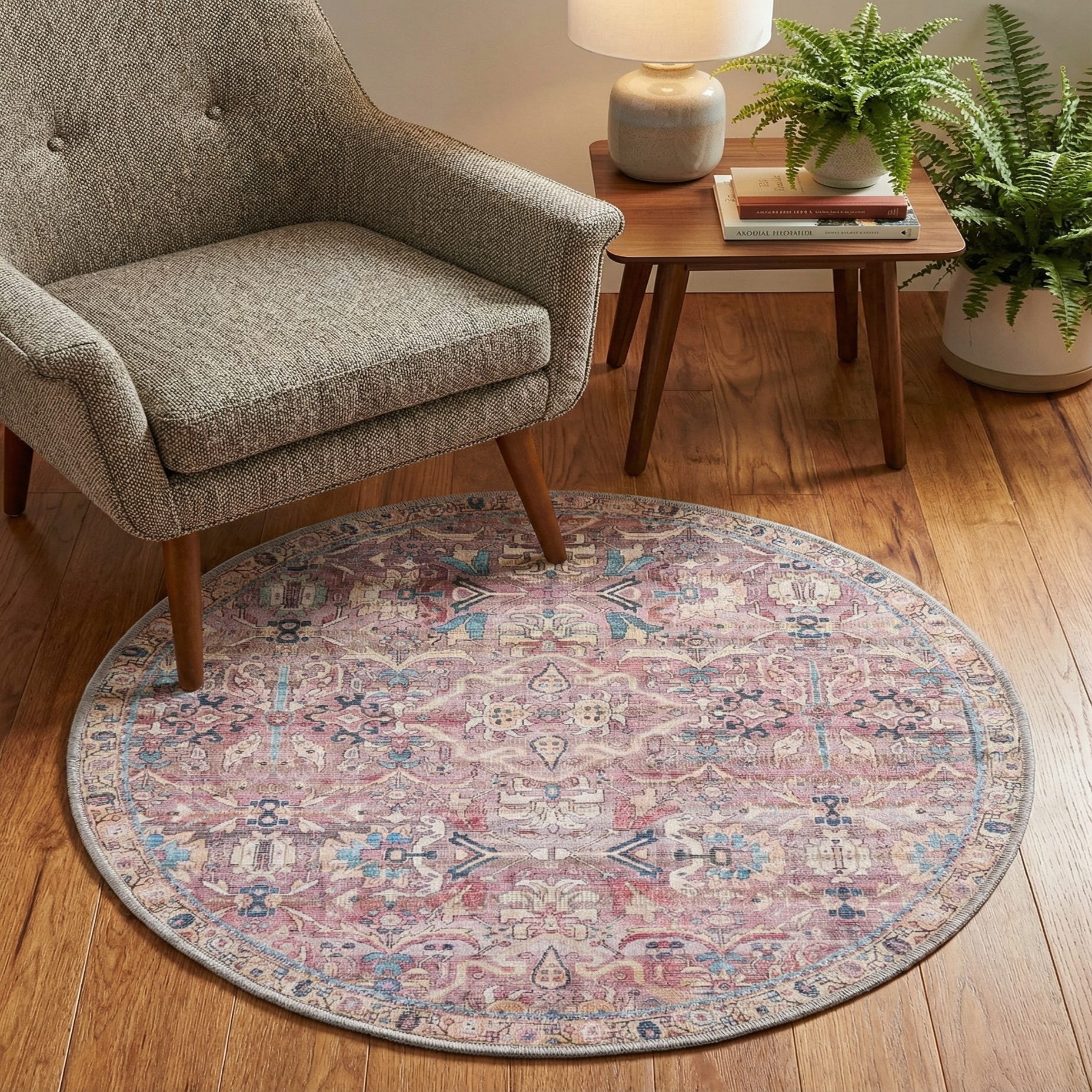 3' 3 x 3' 3 Washable Nostalgia Round Rug