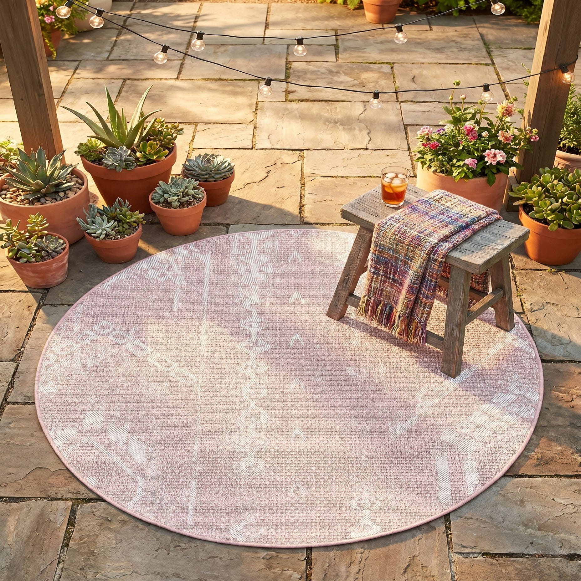 3' x 3' Easy-Clean Bohemian Indoor / Outdoor Round Rug