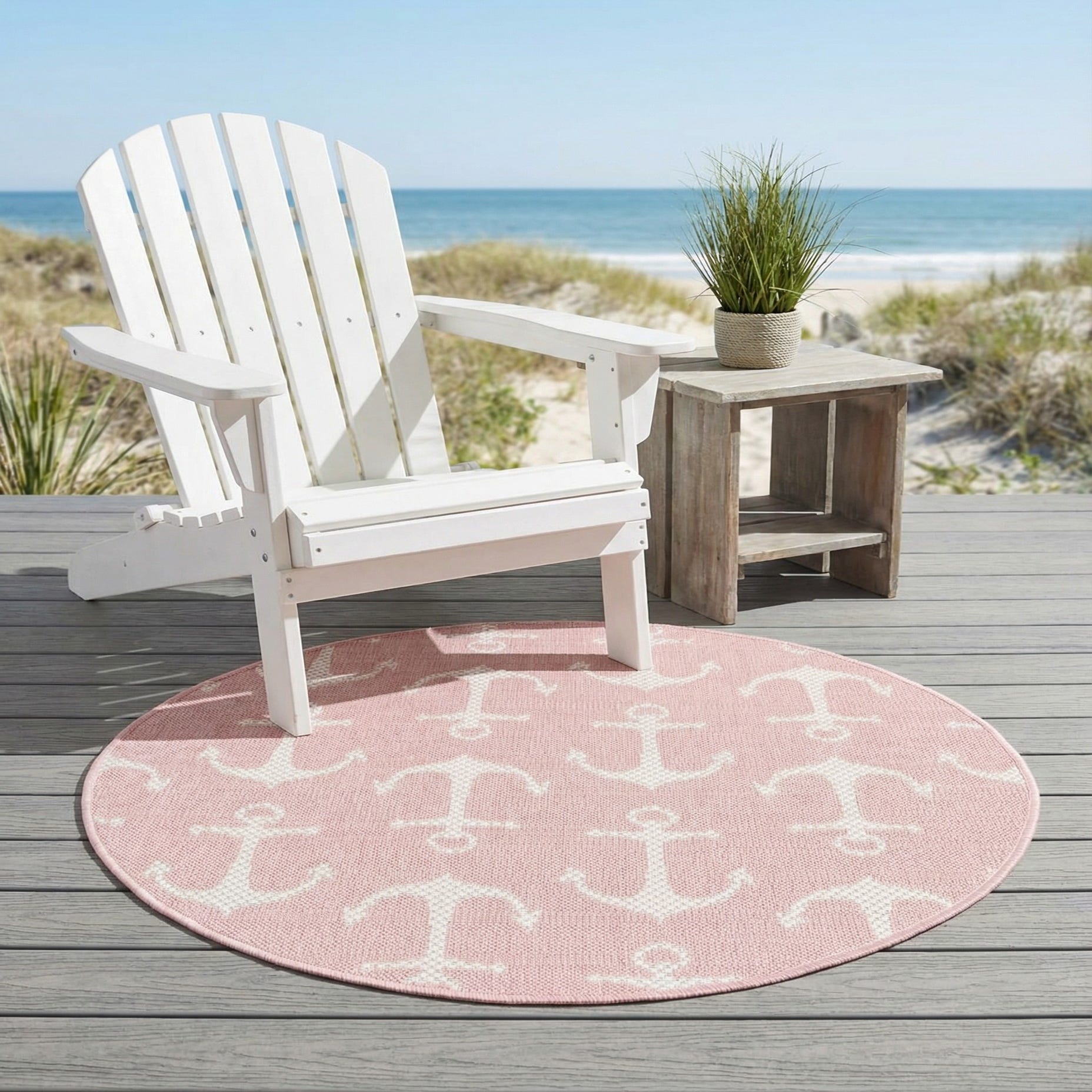 3' x 3' Washable Coastal Indoor / Outdoor Round Rug