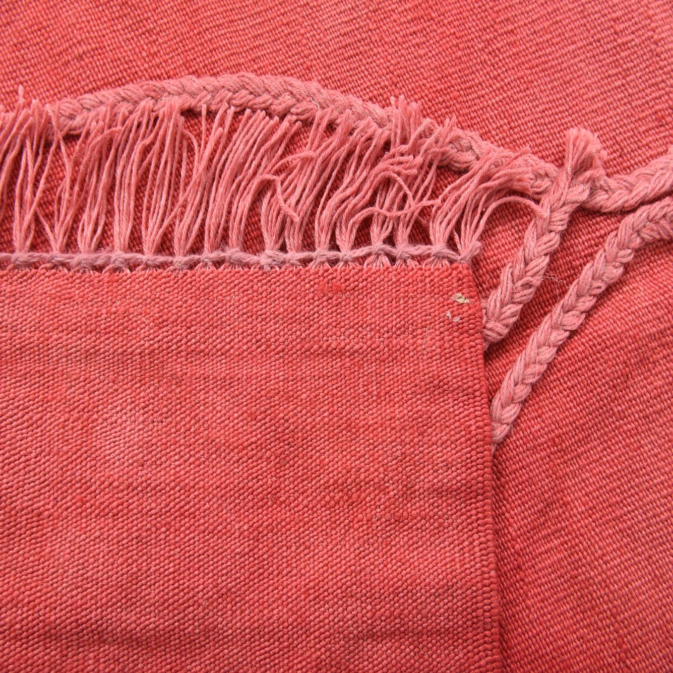 A 3x5 rectangular pink wool flatweave rug with a light pink braided geometric pattern and fringed ends.
