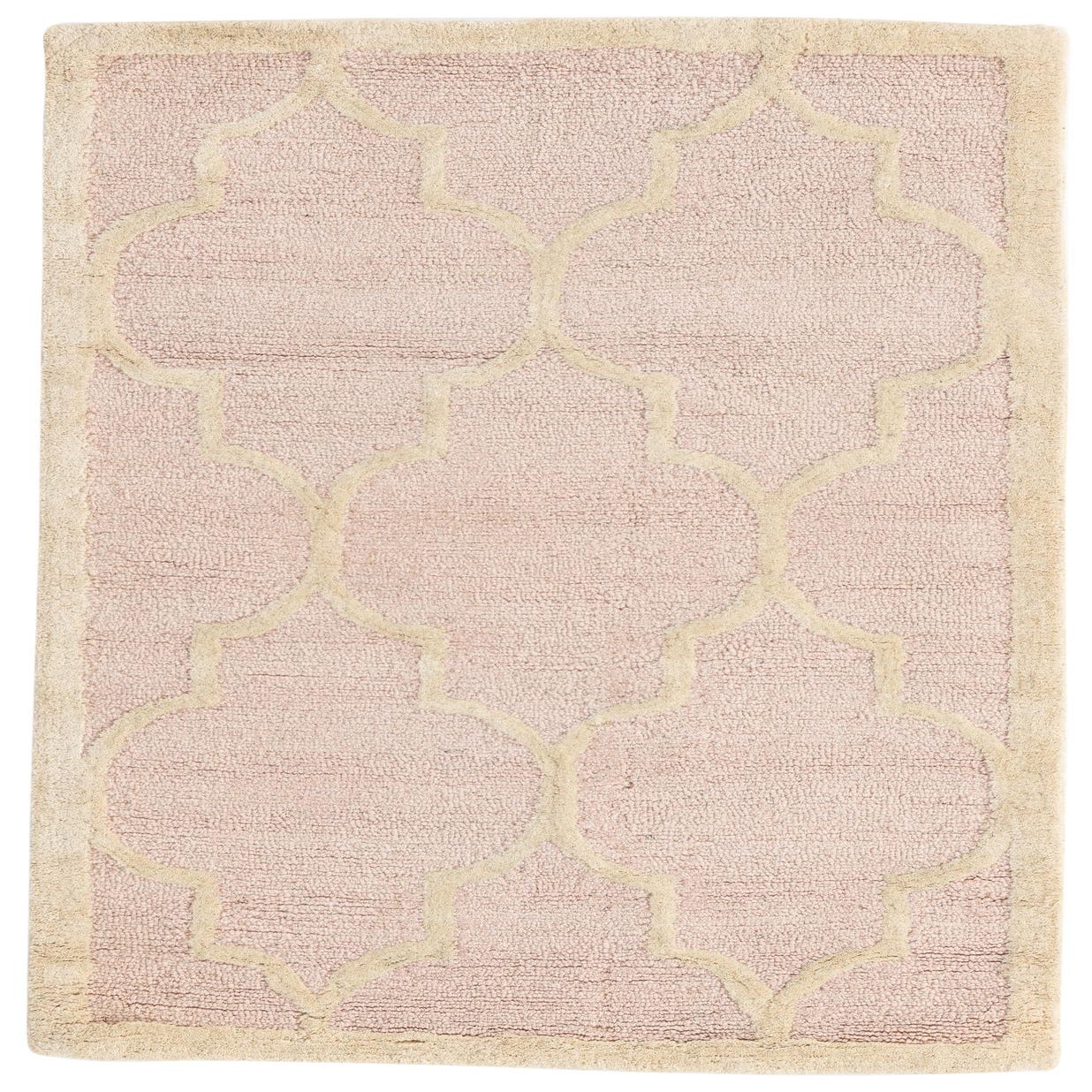 Primary color is Pink. Colors in this rug include: Pink, Cream.