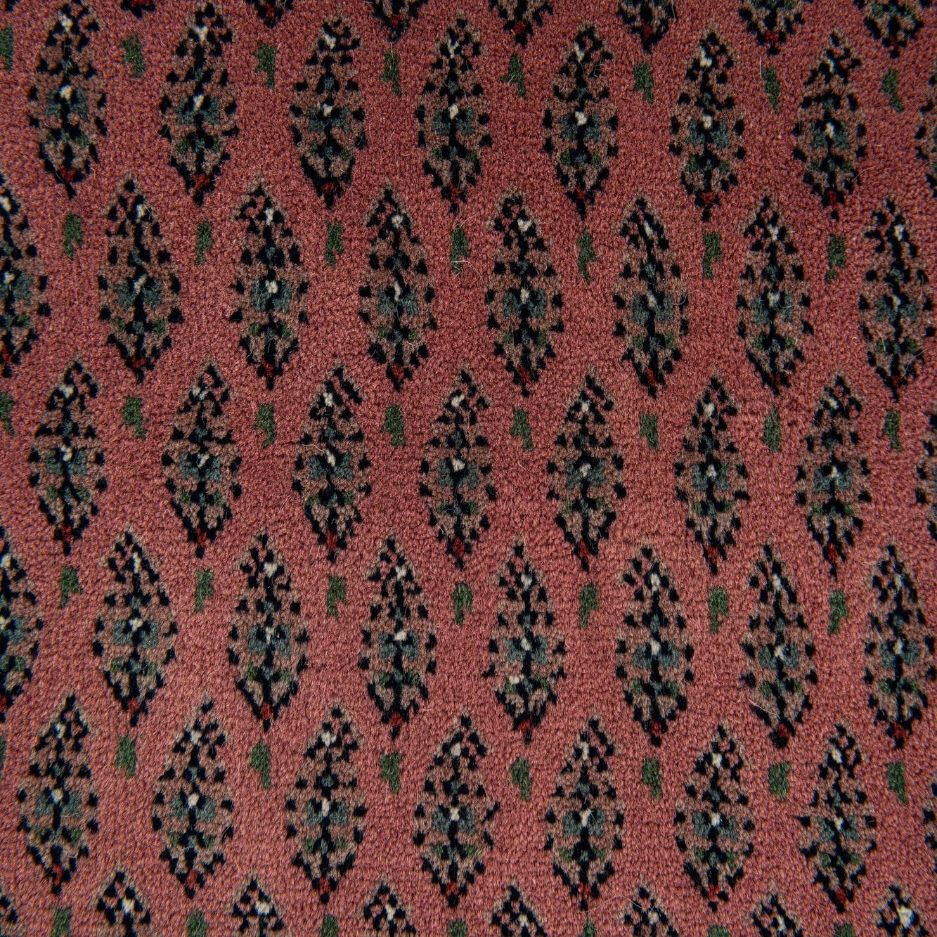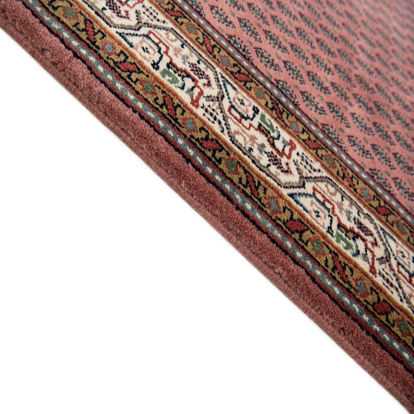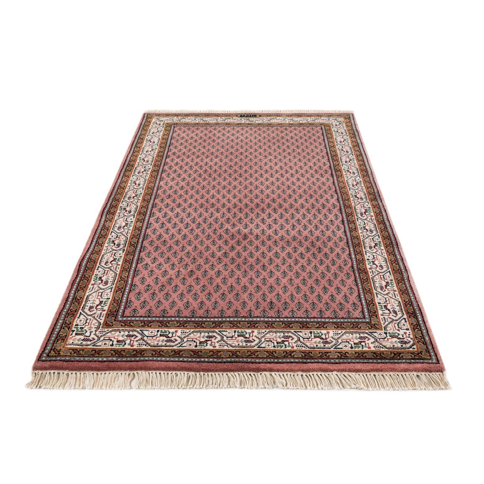 A 3x5 rectangular Mir wool rug in pink, featuring a traditional Oriental pattern with intricate borders and a repeating floral motif.