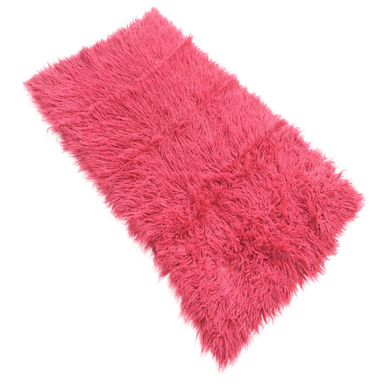 A vibrant 3x5 rectangular shag rug in a bright fuchsia pink, showcasing its plush, high-pile texture.